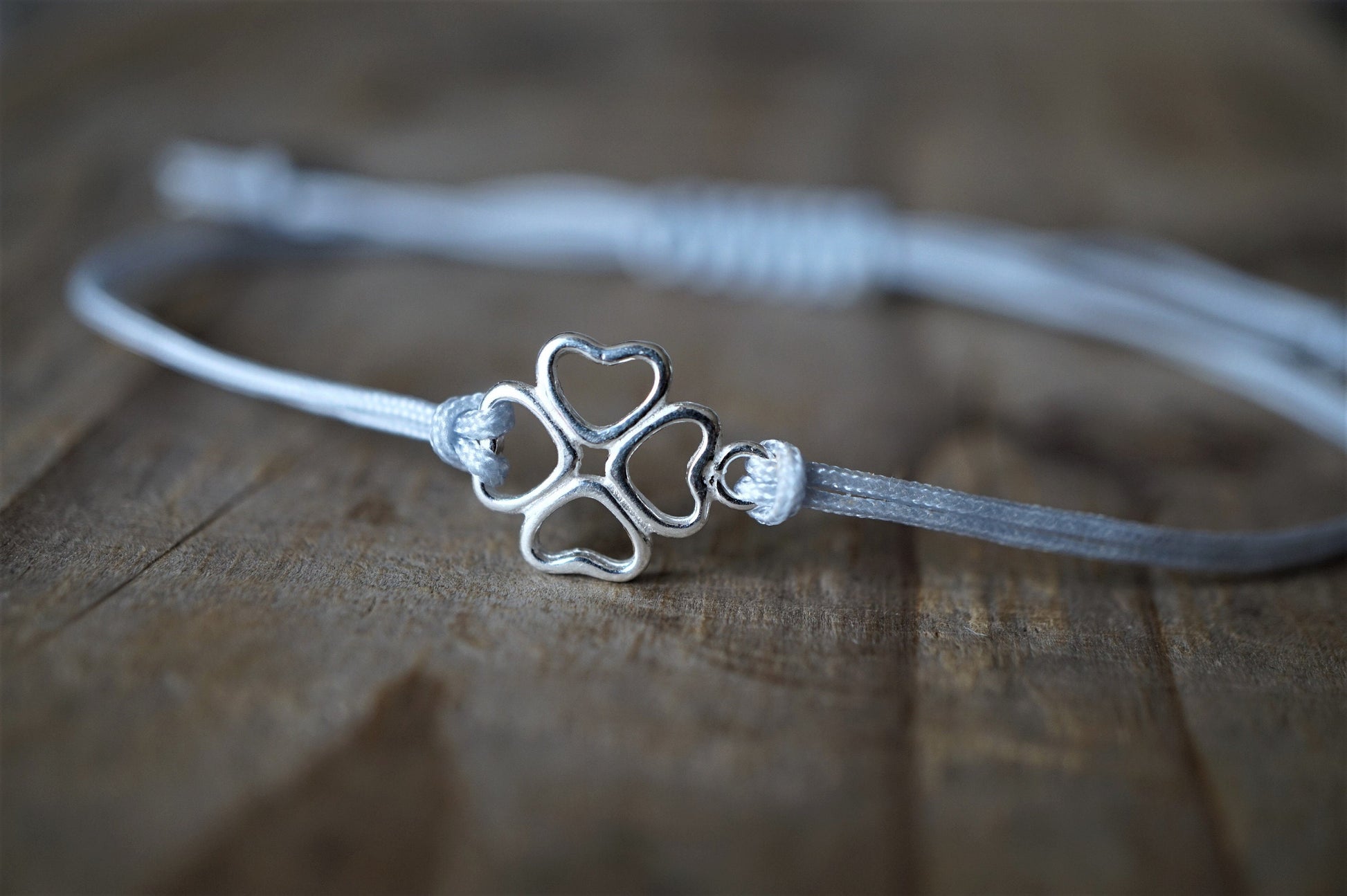 Clover Sterling Silver Cord Bracelet * Lucky Charm Adjustable Friendship Bracelet * Delicate bracelet
