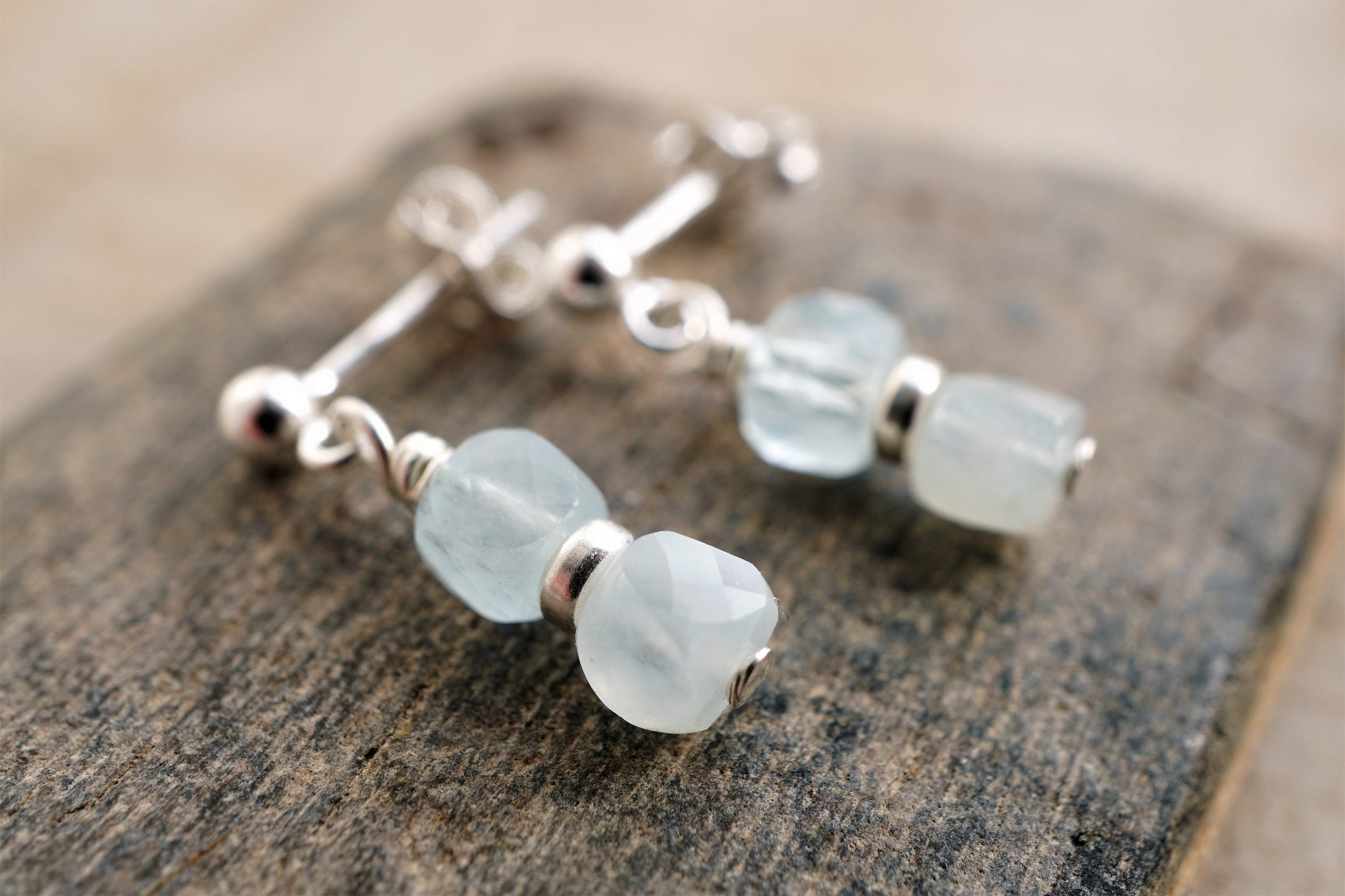 Cute Amazonite Cube Sterling Silver Stud Earrings * Small earrings * Lightweight earrings * Bridesmaid gift