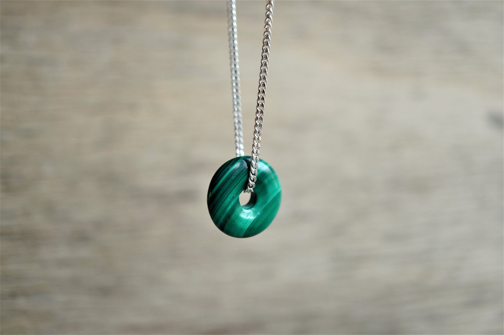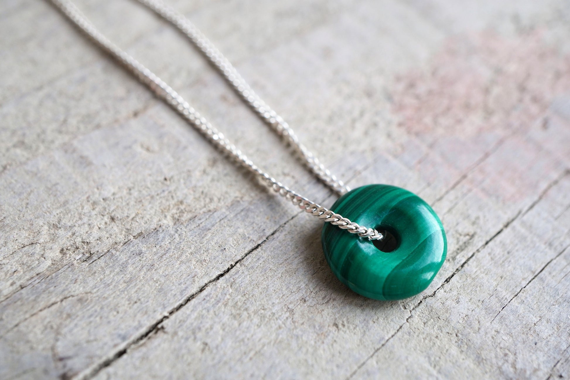 Cute Malachite Donut Sterling Silver Necklace * Gift for her * Green stone * Protection stone