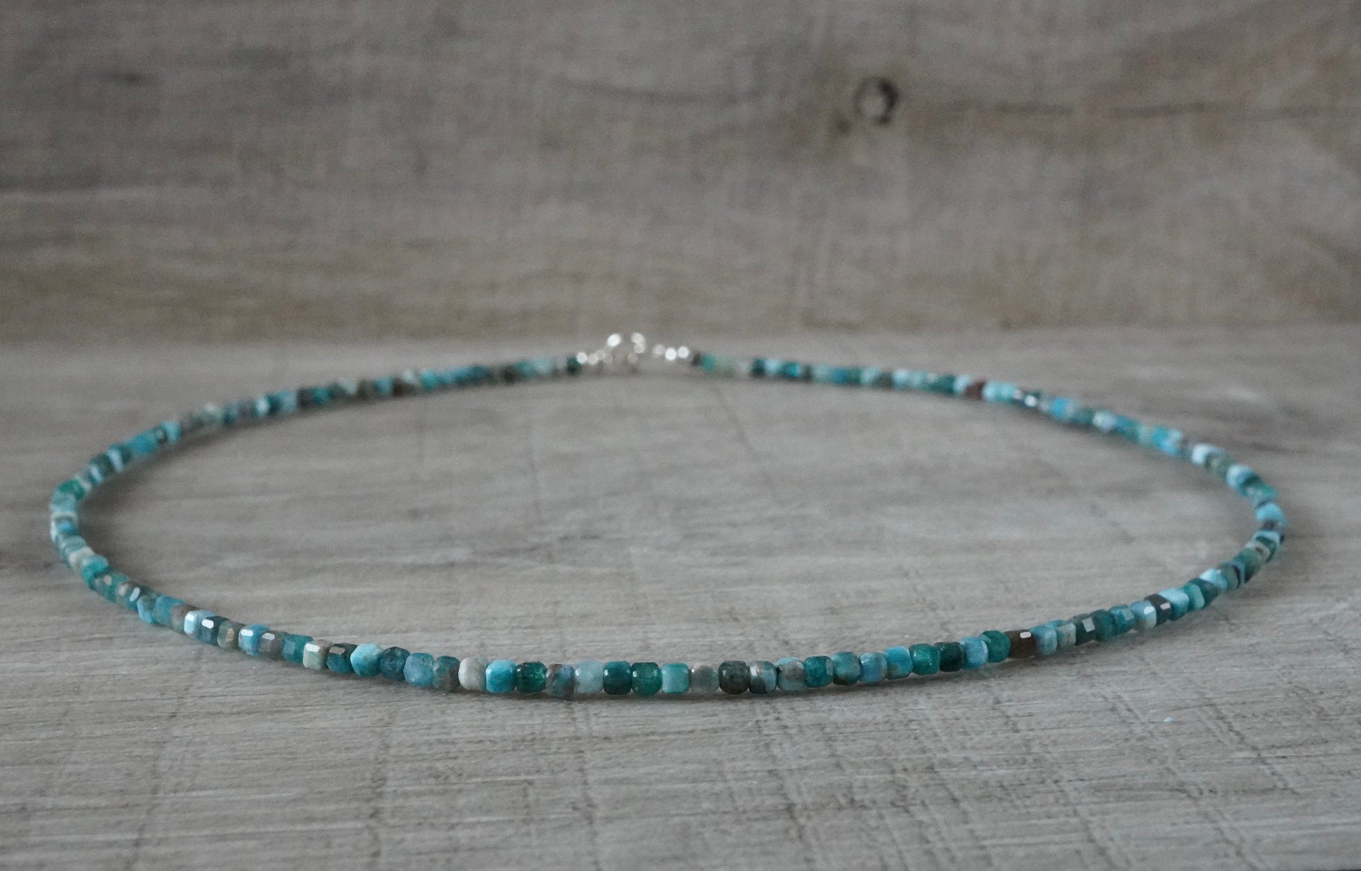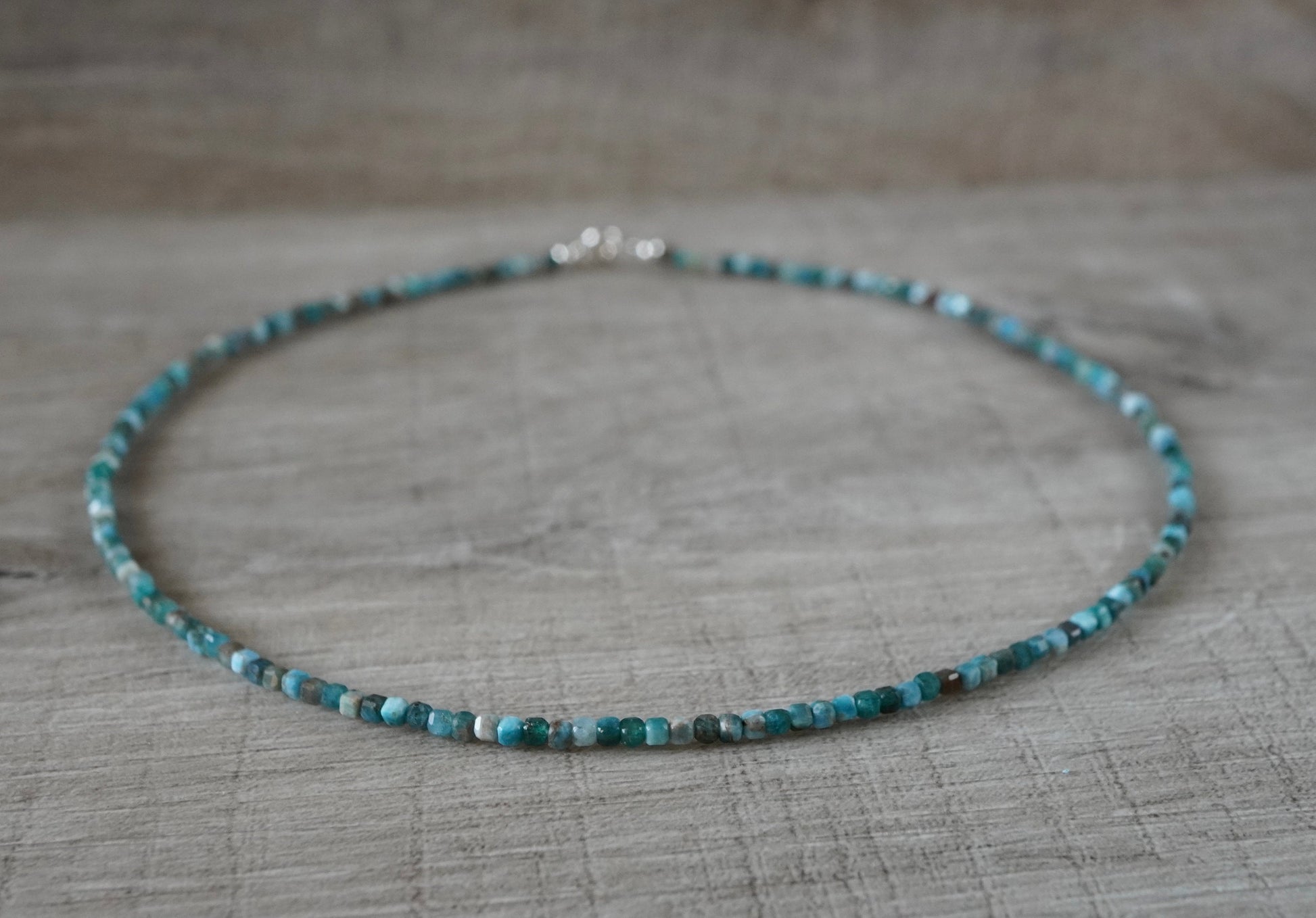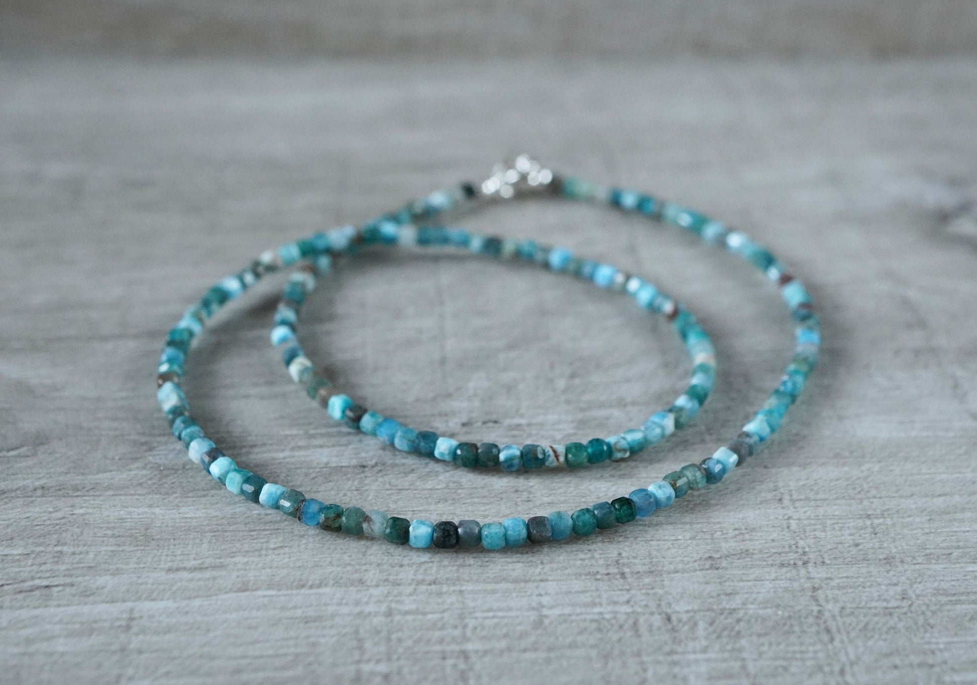 Material: small faceted apatite cube size 2mm (dainty necklace) with sterling silver
