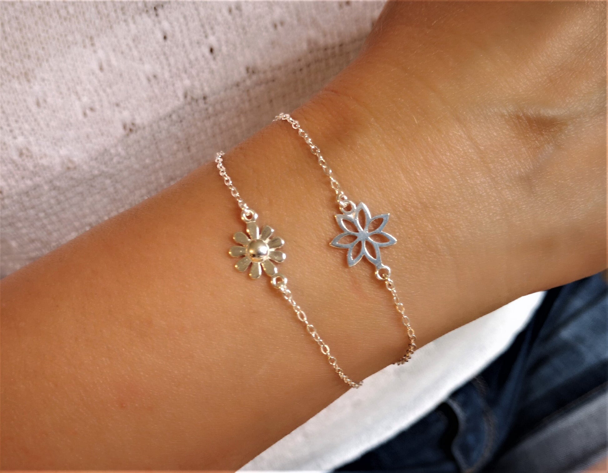 Daisy Sterling Silver Bracelet * Flower Bracelet * Dainty jewelry* Gift For Her* Bridesmaid gift