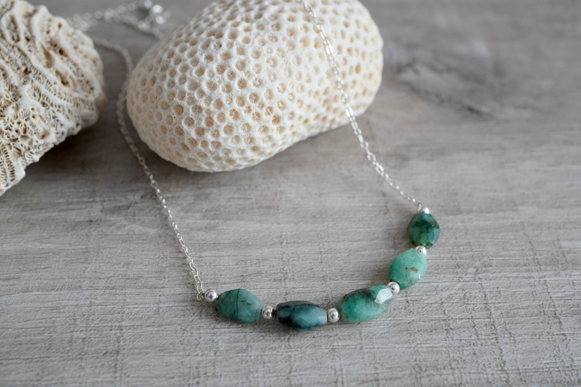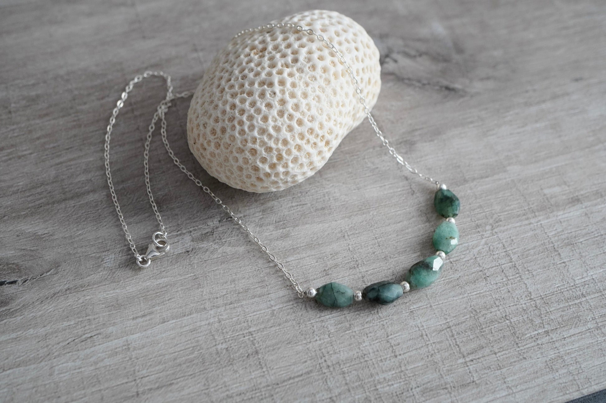 Emerald Sterling Silver Necklace * Birthstone of May * Green stone necklace