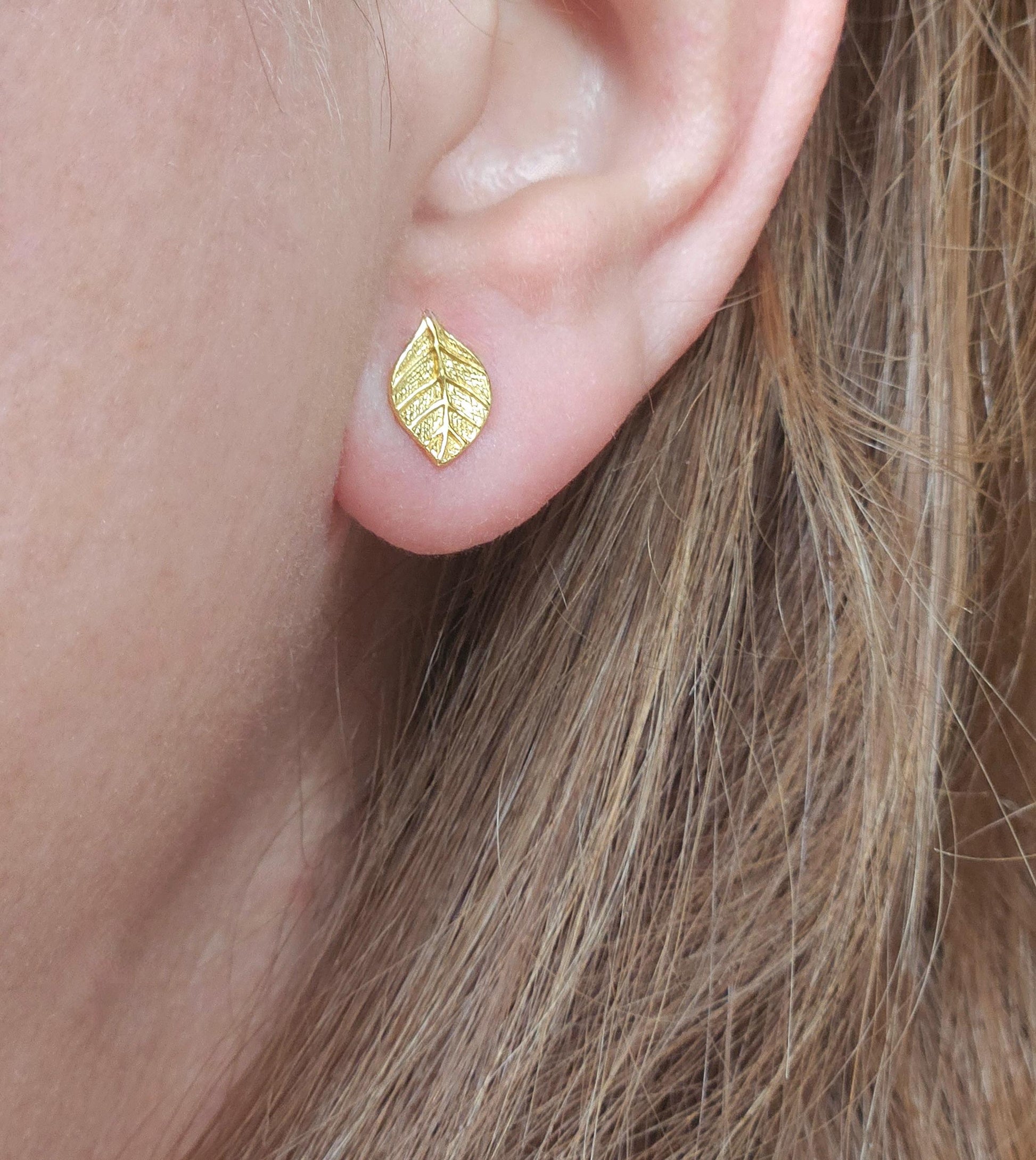 Gold Sterling Silver Leaf Stud* Dainty* Gift for her* Feminine*