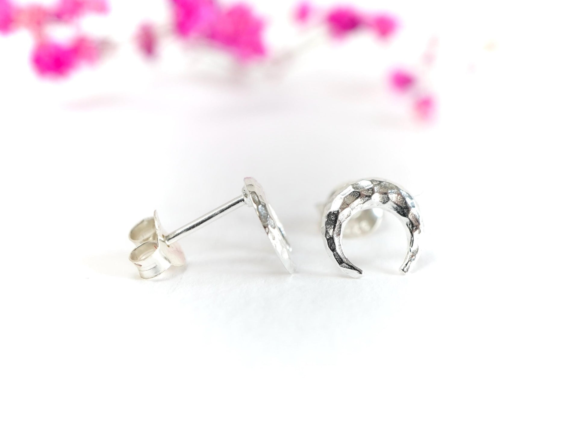 Hammered Crescent Moon Earrings * Stud earrings * Moon jewellery * Gift for her