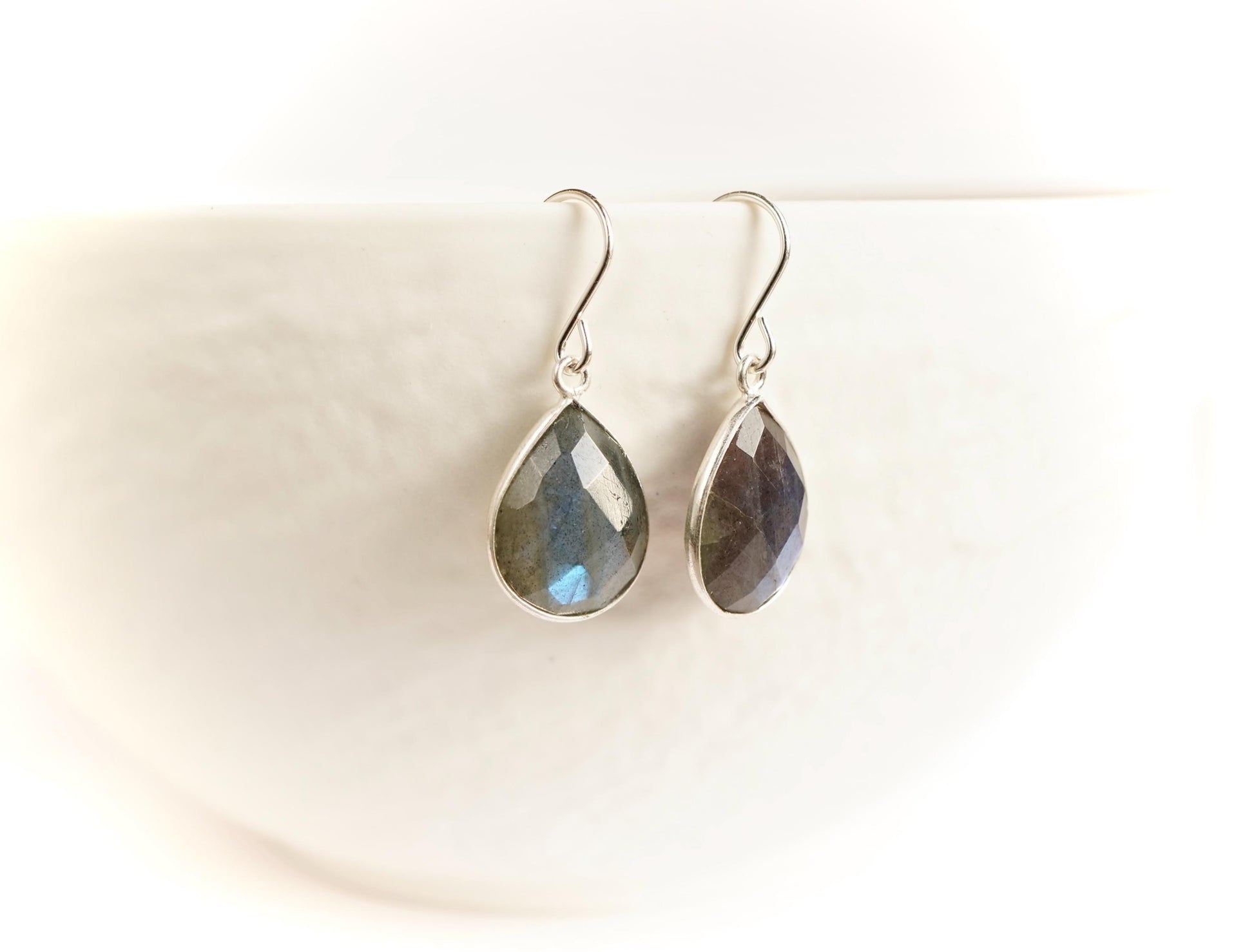 Labradorite Sterling Silver Drop Earrings * Simple earrings * Lightweight earrings