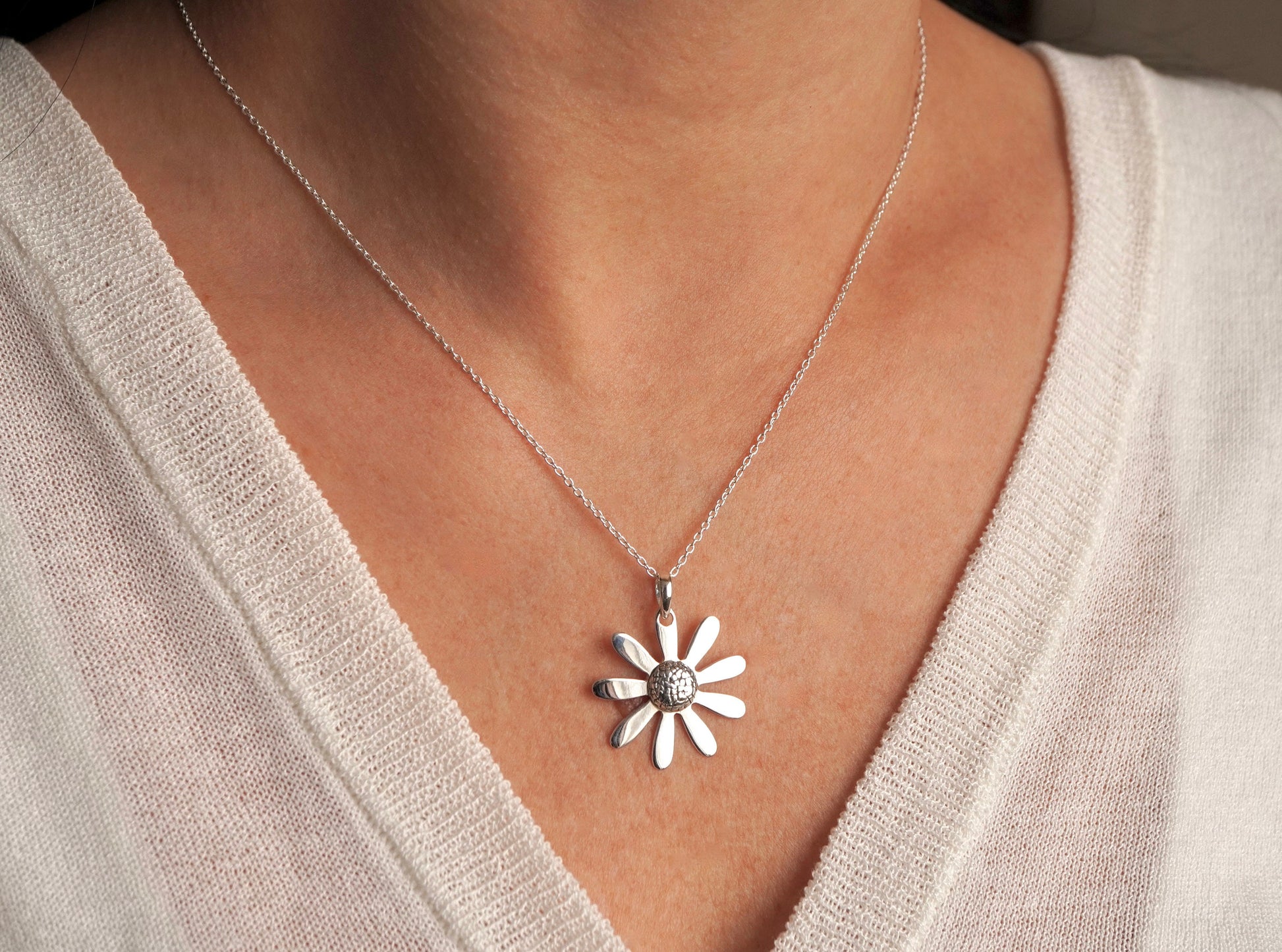 Large Daisy Sterling Silver Necklace * Bracelet * Flower Bracelet * Gift For Her *