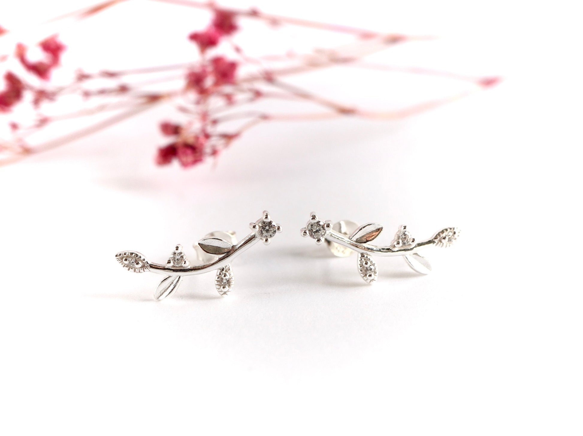 Leaf Bar Stud Earrings * Stud * Leaf earrings * Sterling Silver Stud