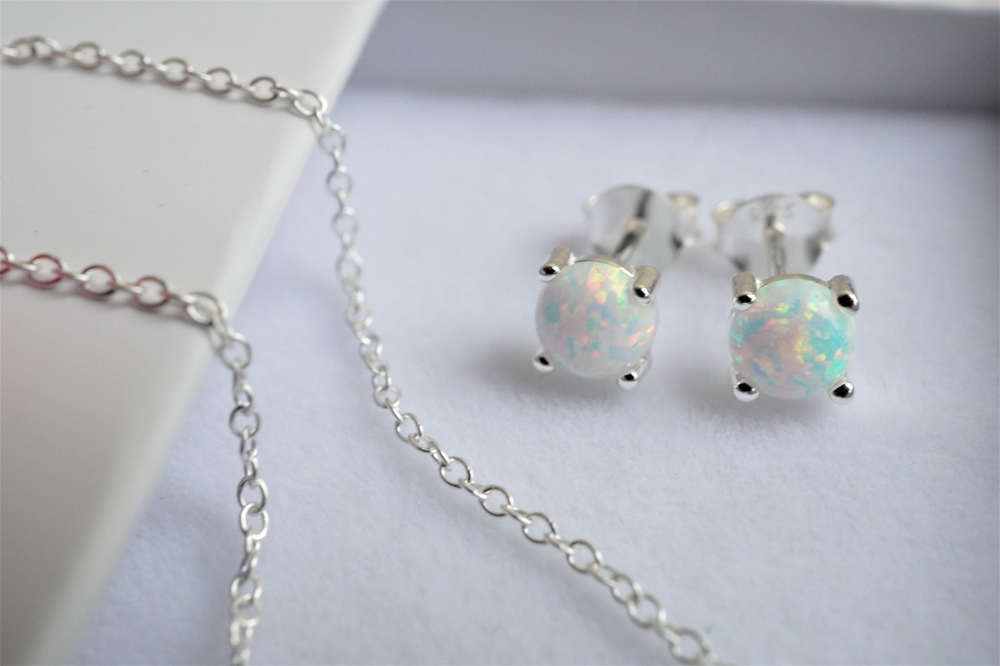 Opal Sterling Silver Dainty Stud & Bracelet Set* Feminine Dainty bracelet * Opal jewellery