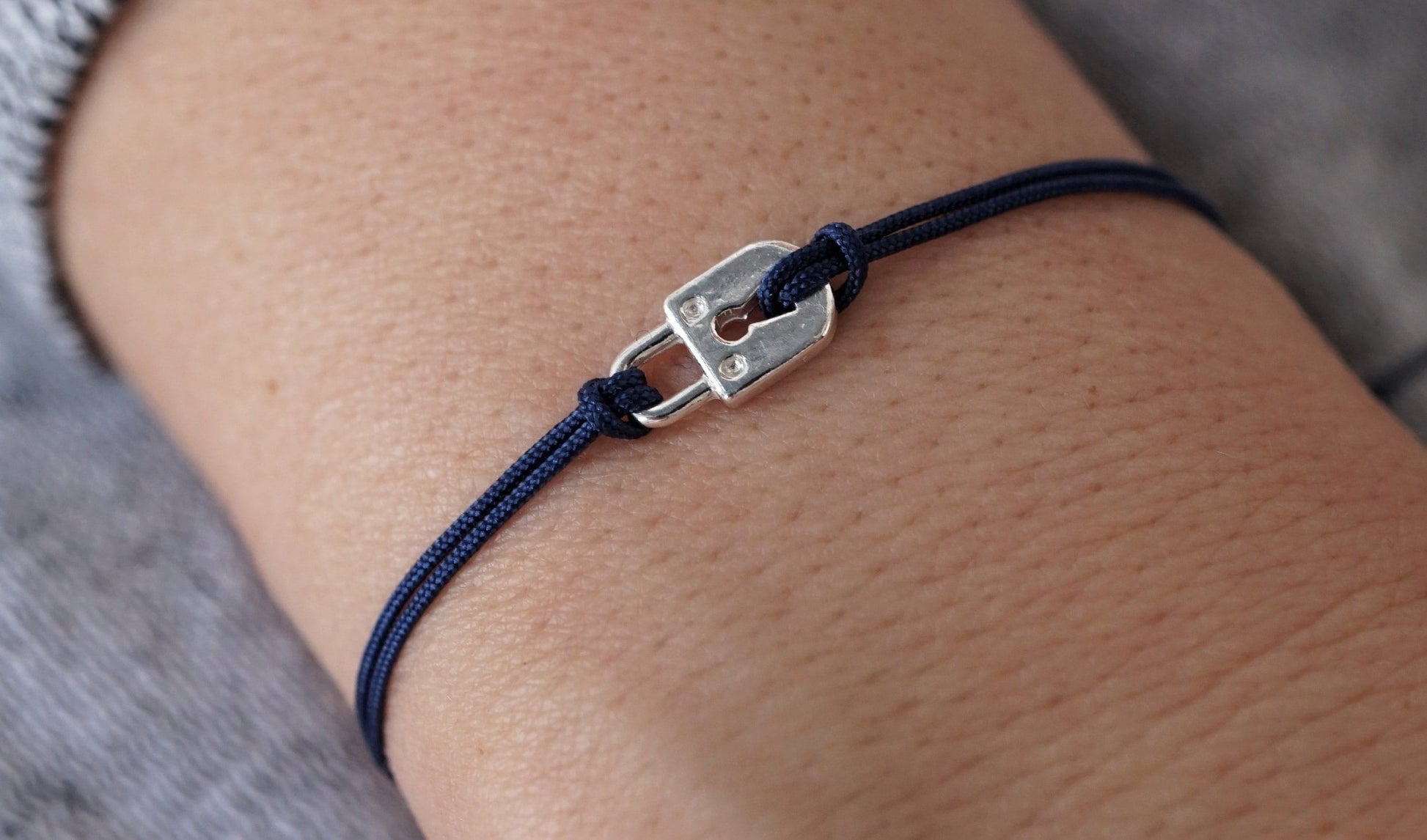Minimalist Sterling Silver Padlock Bracelet * Adjustable Cord Unisex Jewellery * Handmade Gift * Love bracelet * Delicate bracelet