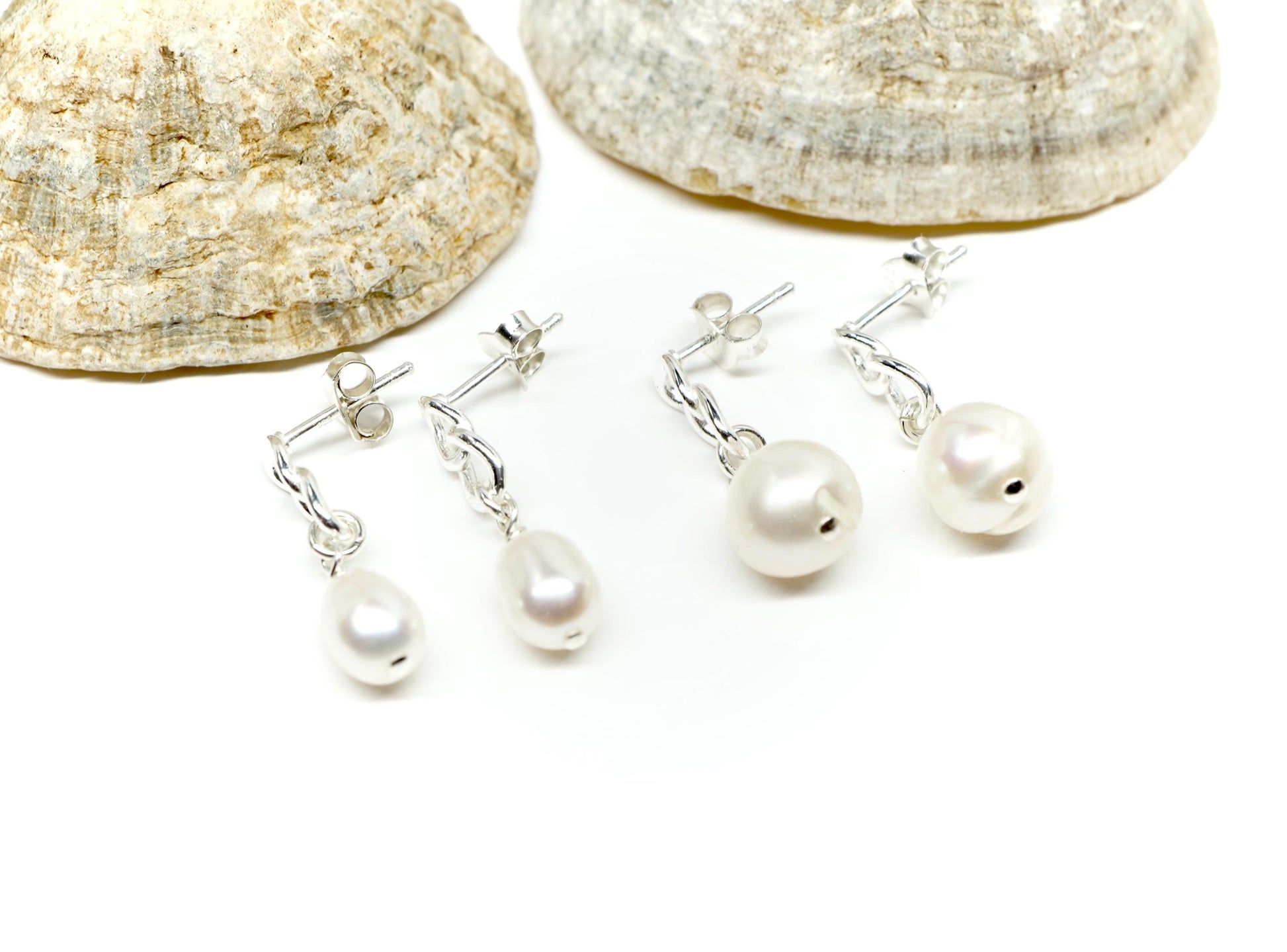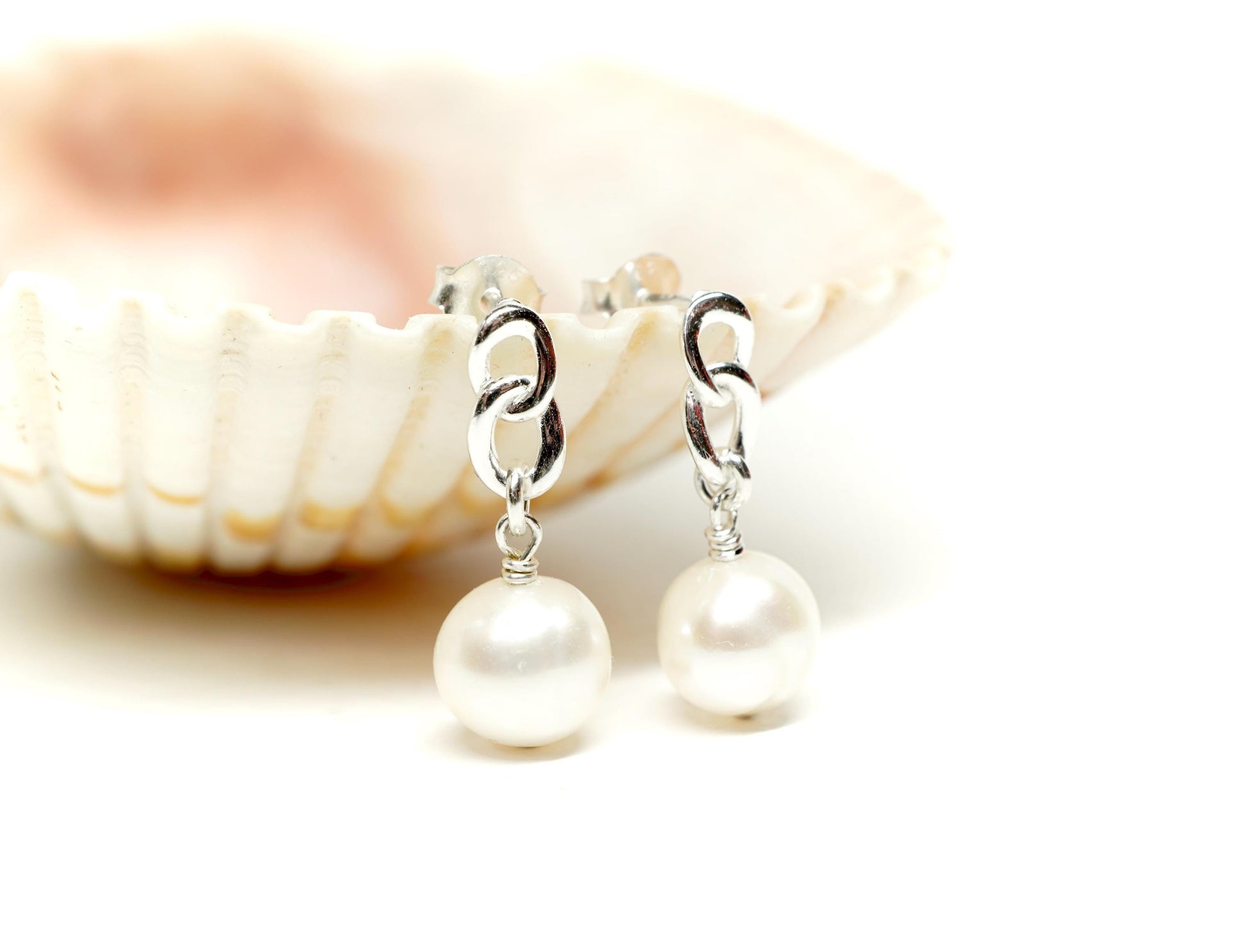 Pearl Chain Stud Earrings * Pearl earrings * Gift for her