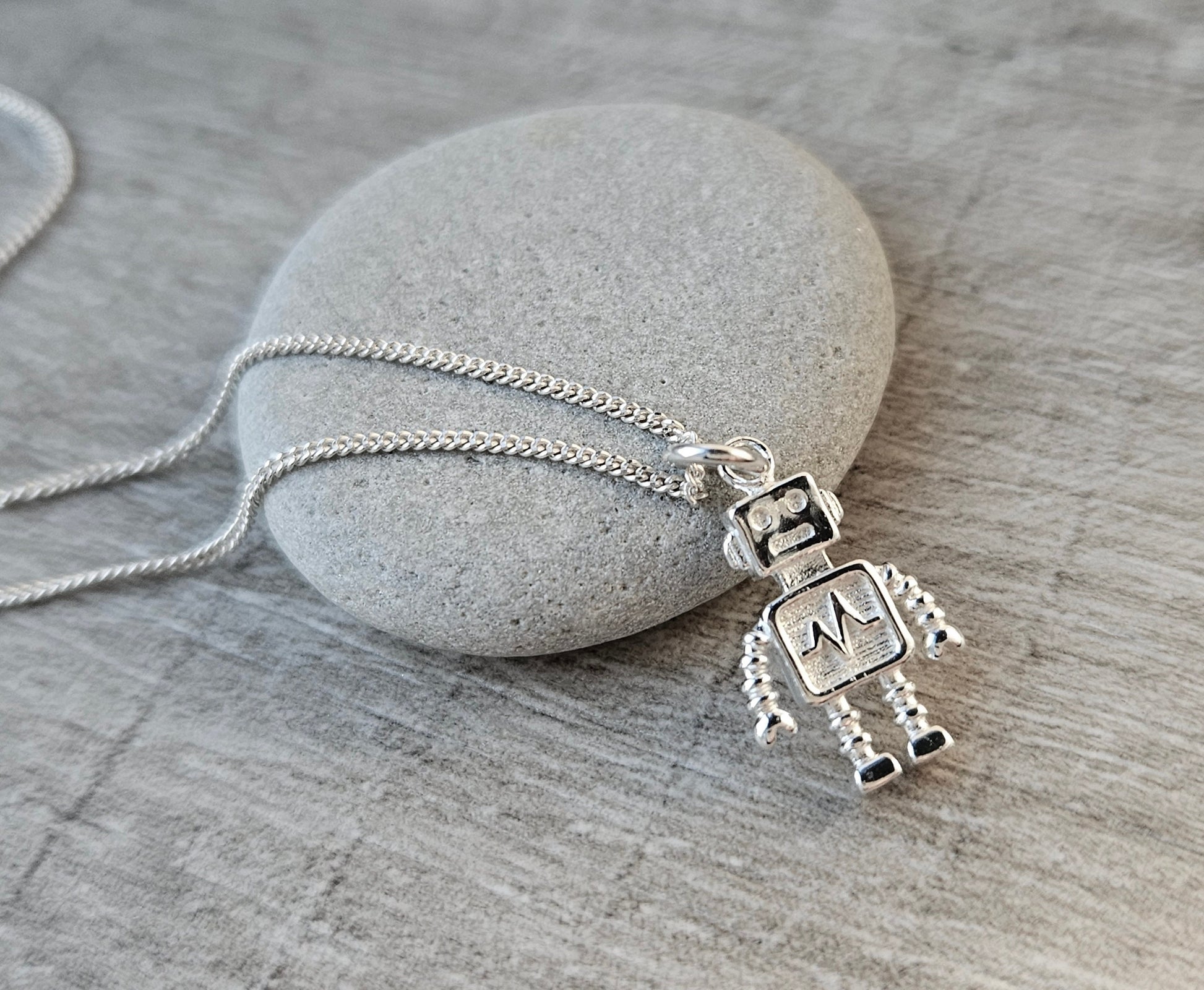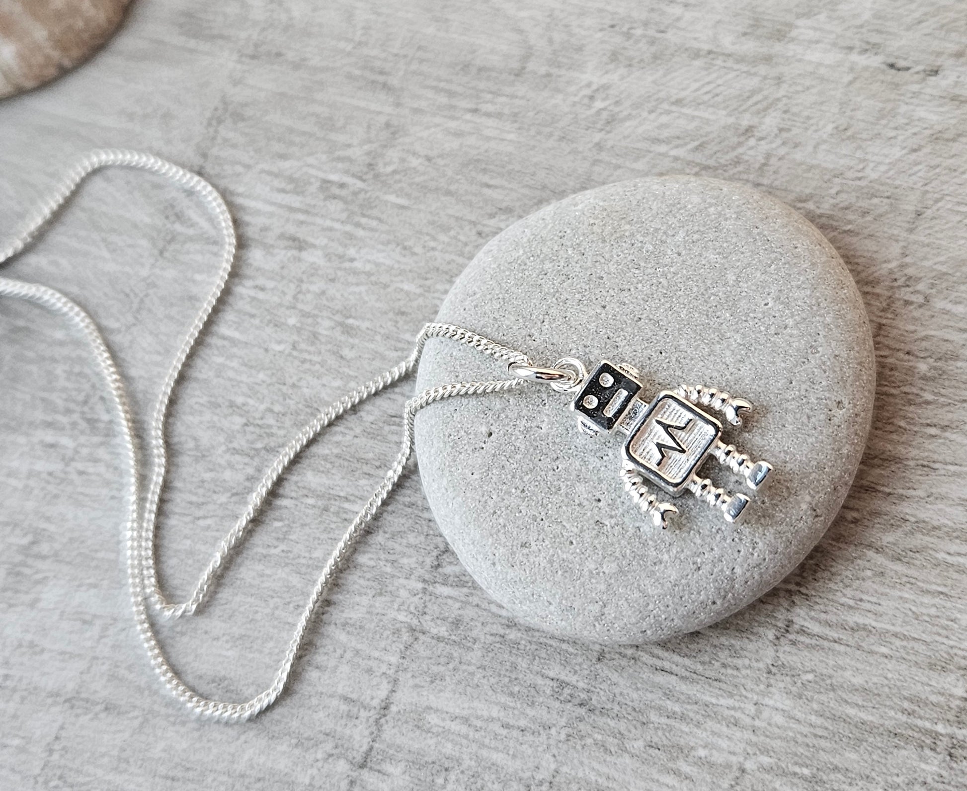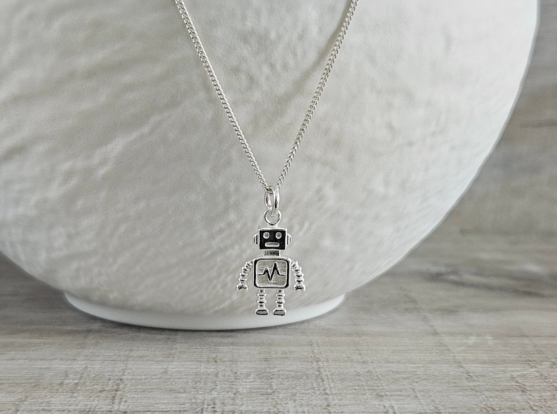 Robot Sterling Silver Necklace * Robot pendant * Gift for her *