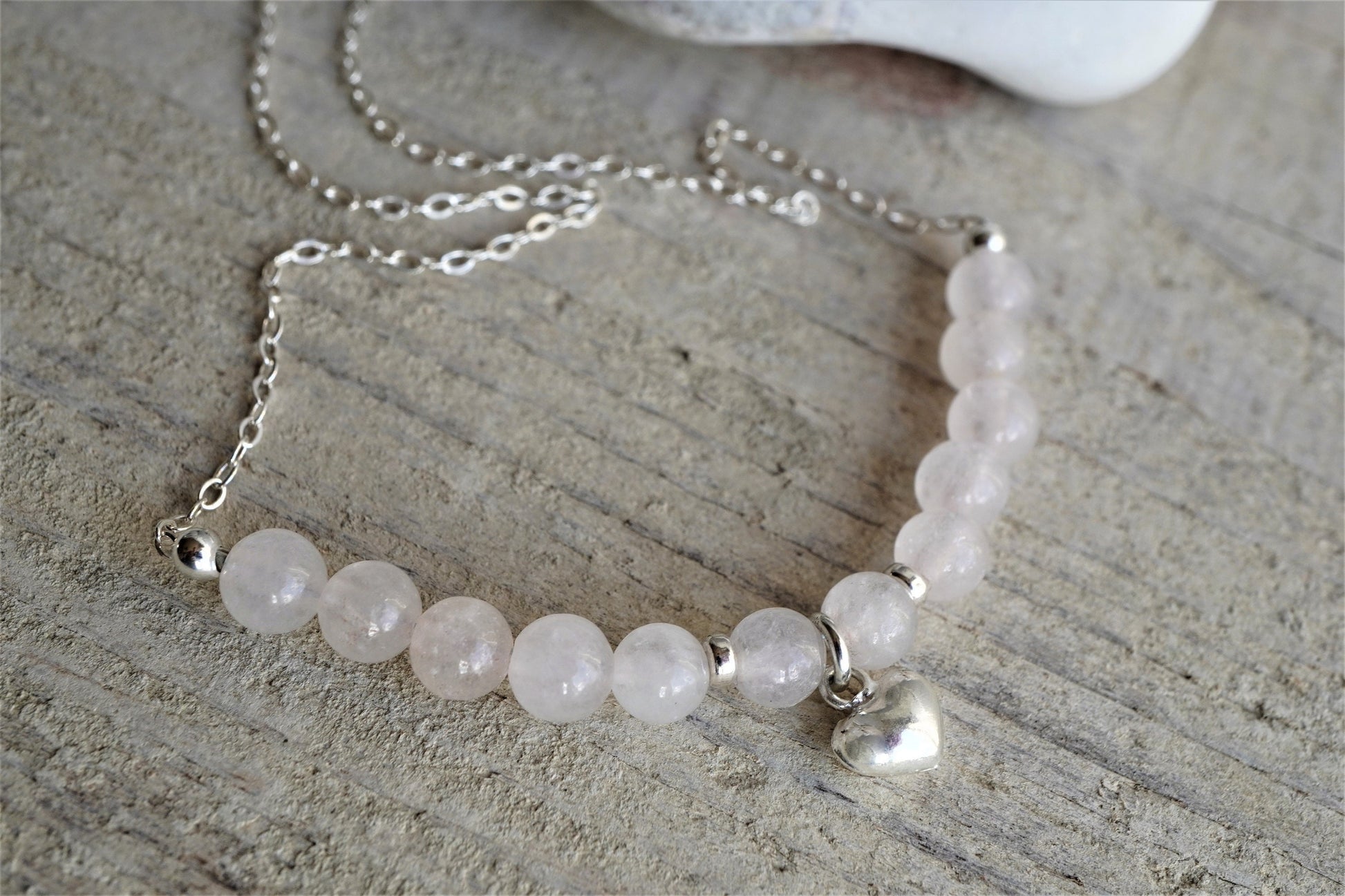 Rose Quartz Sterling Silver Heart Necklace * Heart Stone* Gift for her* January, October birthstone * Love stone