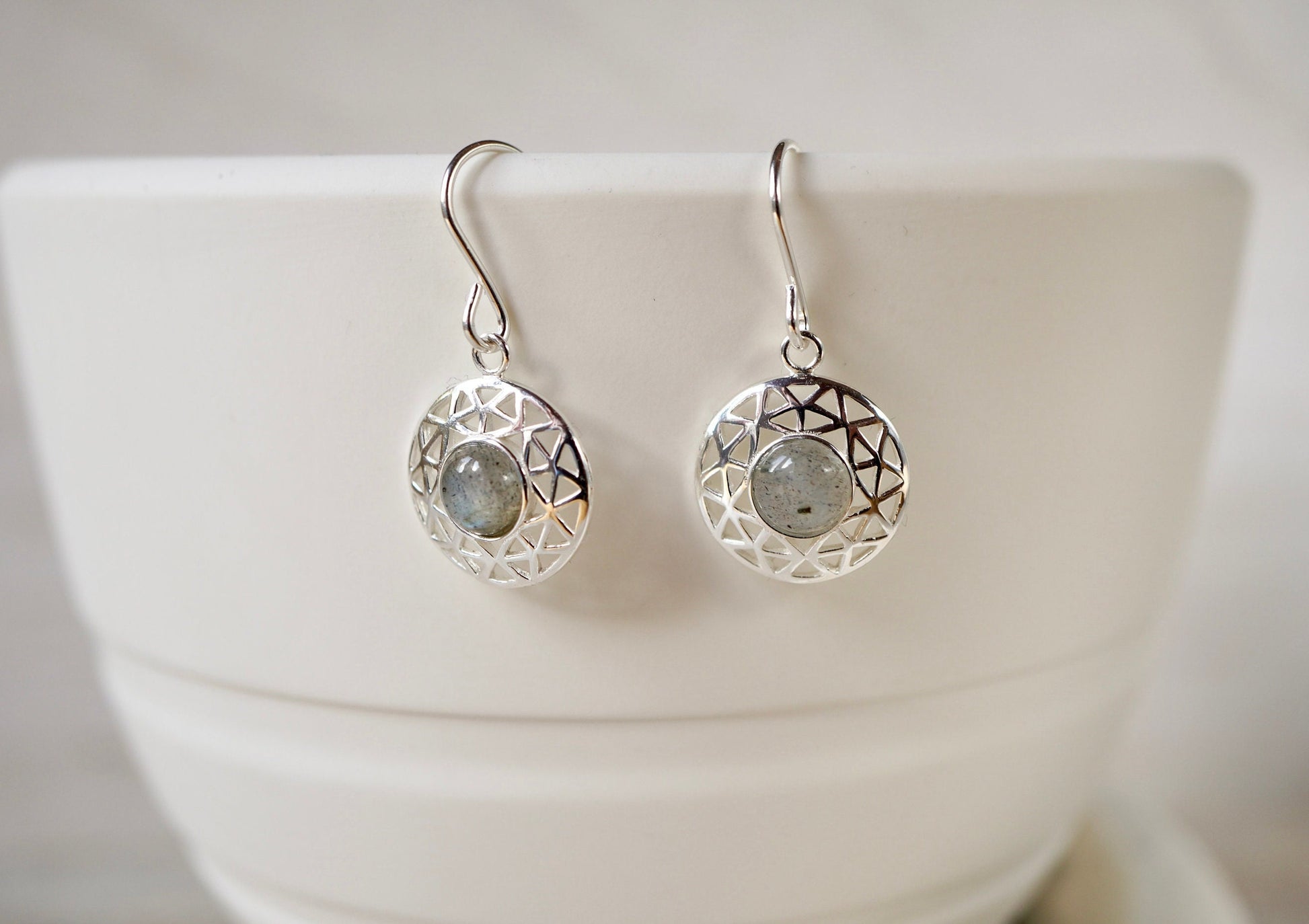 Round Sterling Silver Labradorite Earrings
