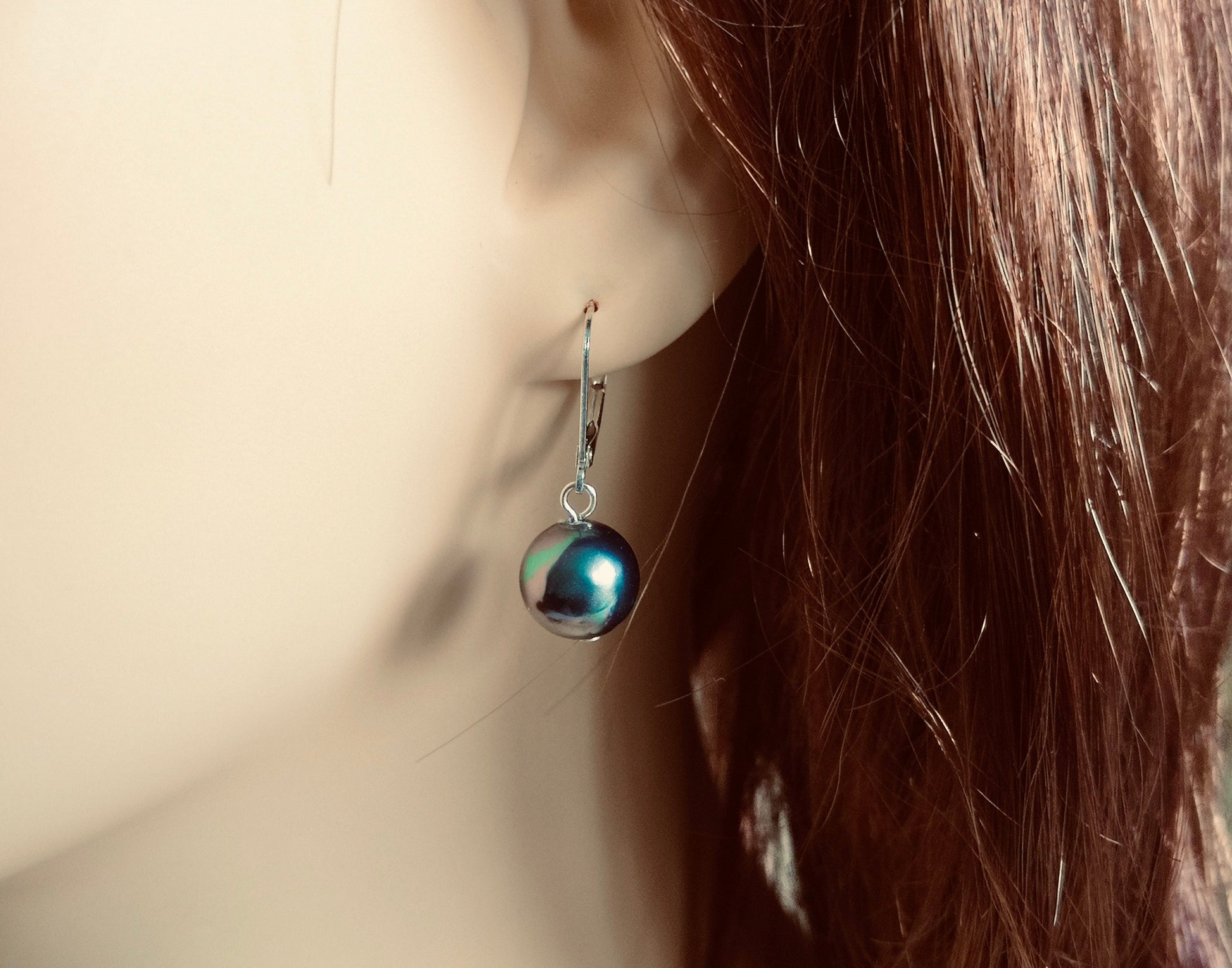 Material: grey-purple lustered sea shell bead with sterling silver Lovely elegant earrings for everyday wear, also make a very sweet gift.