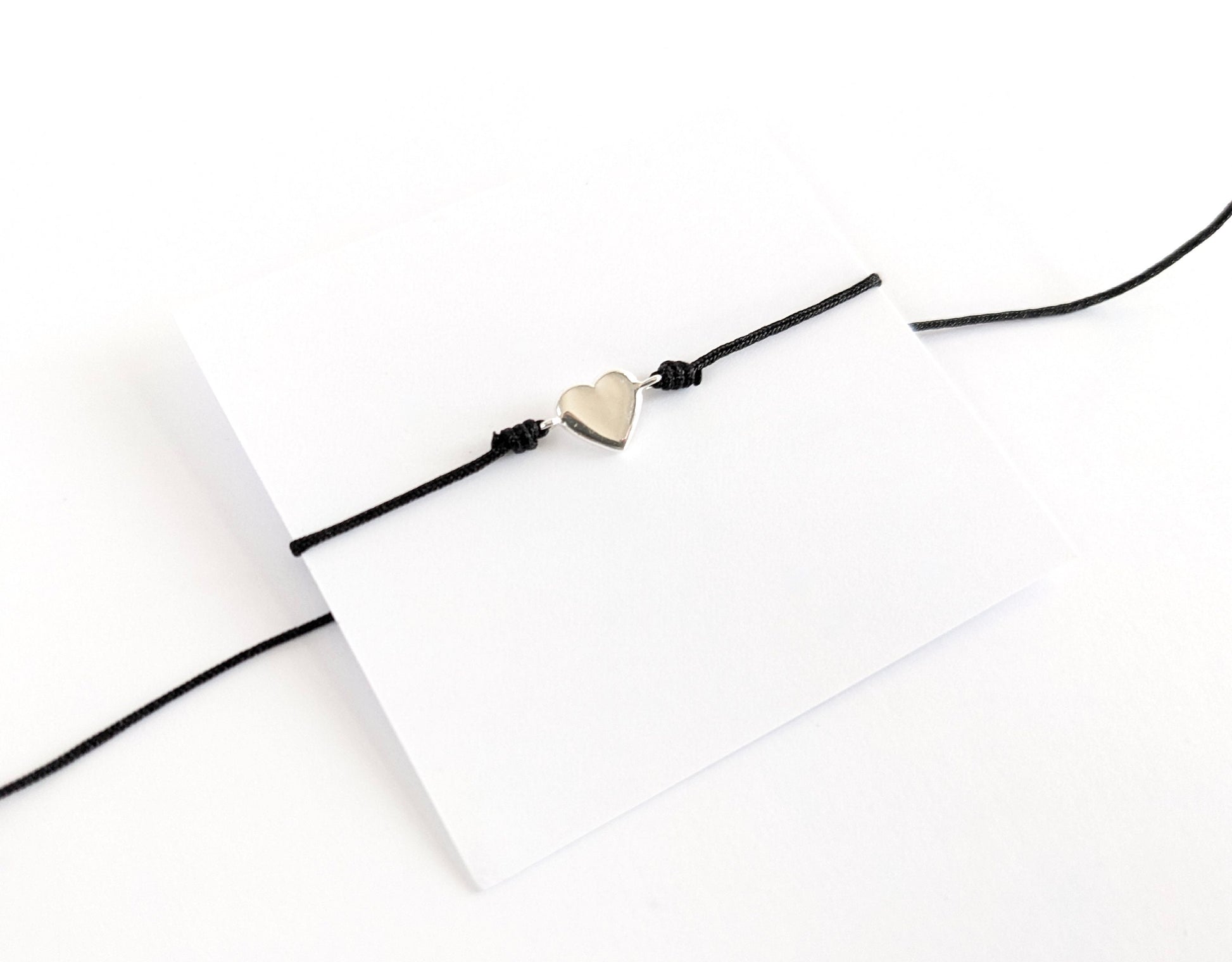 Silver Heart Black Cord Bracelet * Sterling Silver * Friendship bracelet * Love*