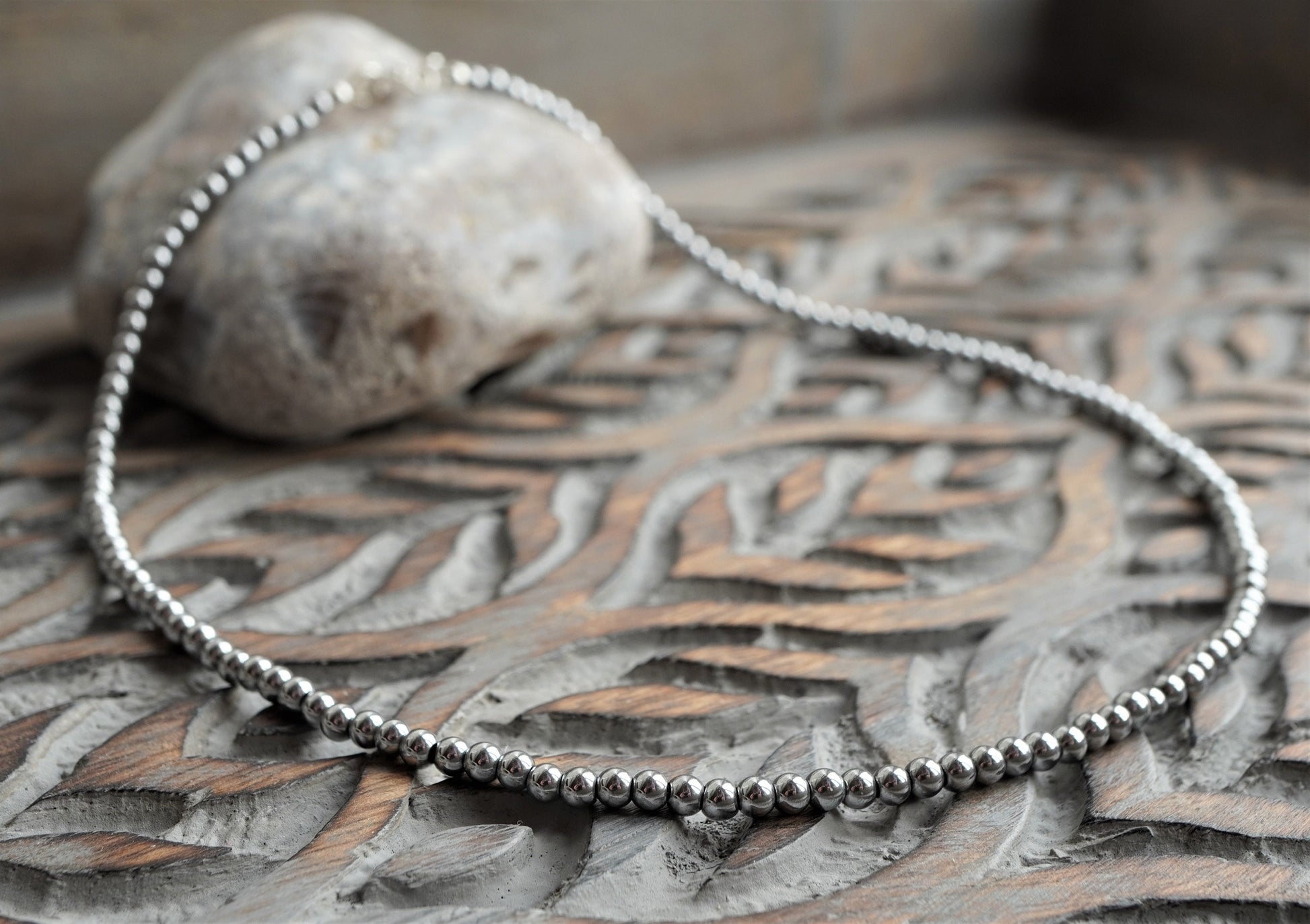 Material: 3mm hematite beads with sterling silver