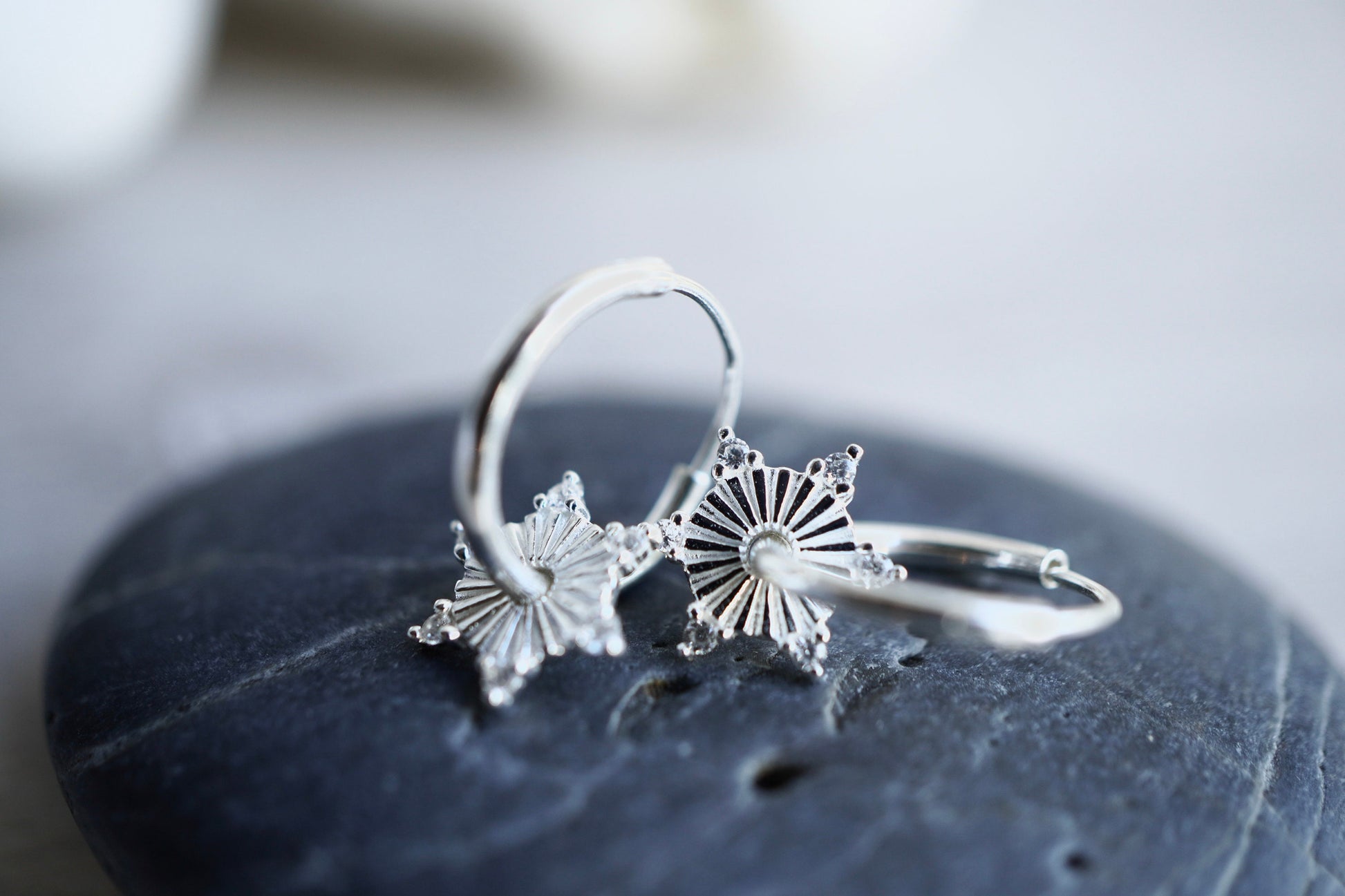 Silver Star Hoop Earrings * Boho earrings * Silver hoop * Feminine jewellery