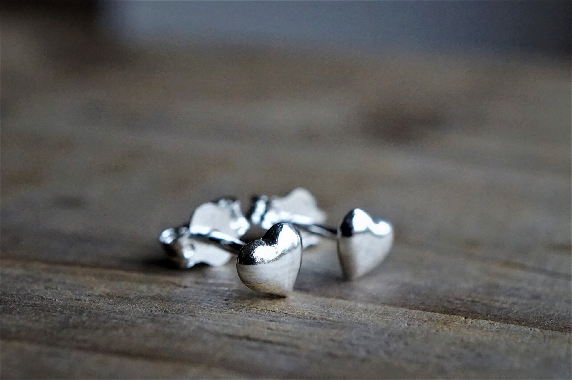 Small Puff Heart Stud Earrings * Stud Earrings * Heart earrings * Sterling silver stud