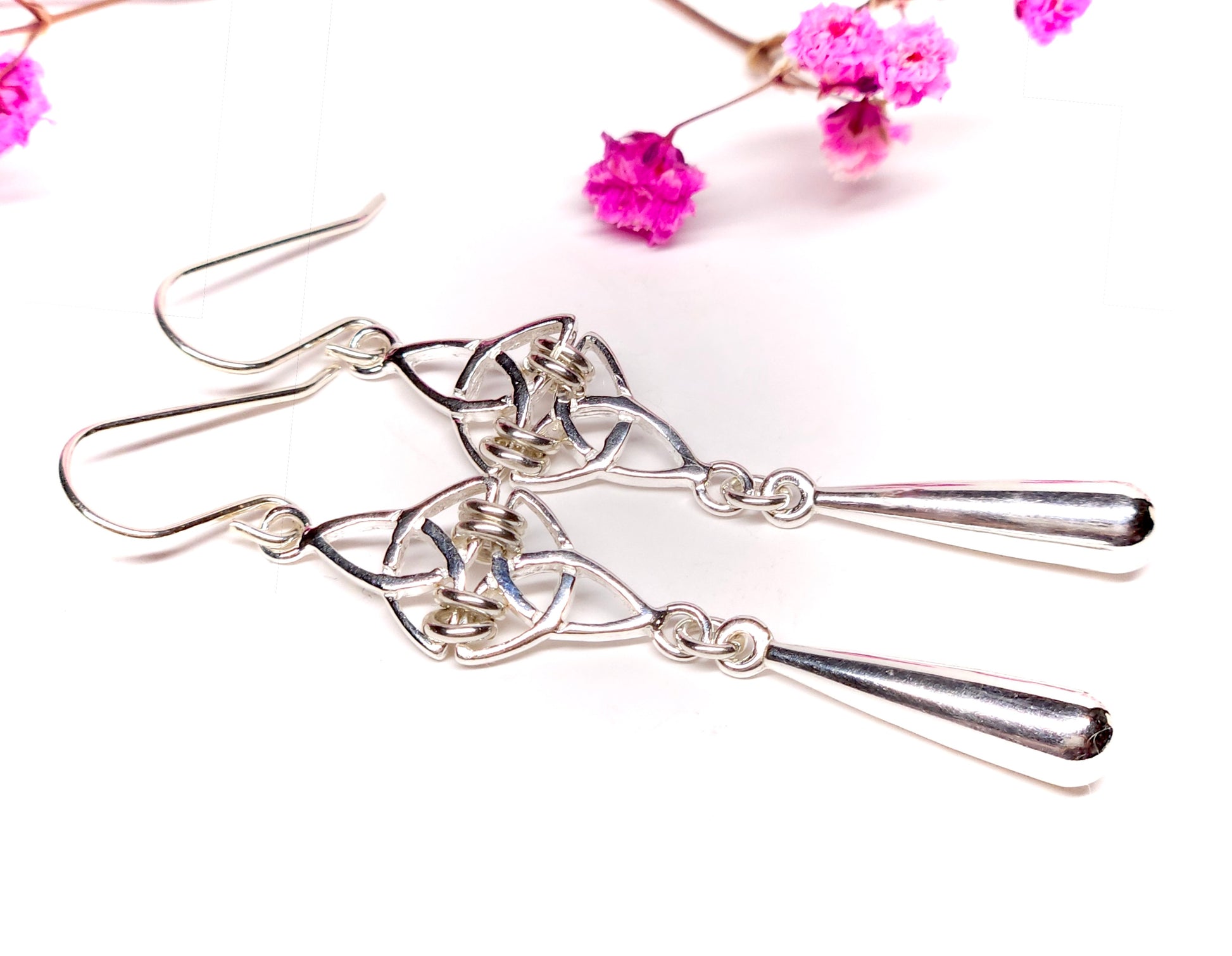 Sterling Silver Long Celtic Triquetra Earrings * Celtic earrings * Trinity knot