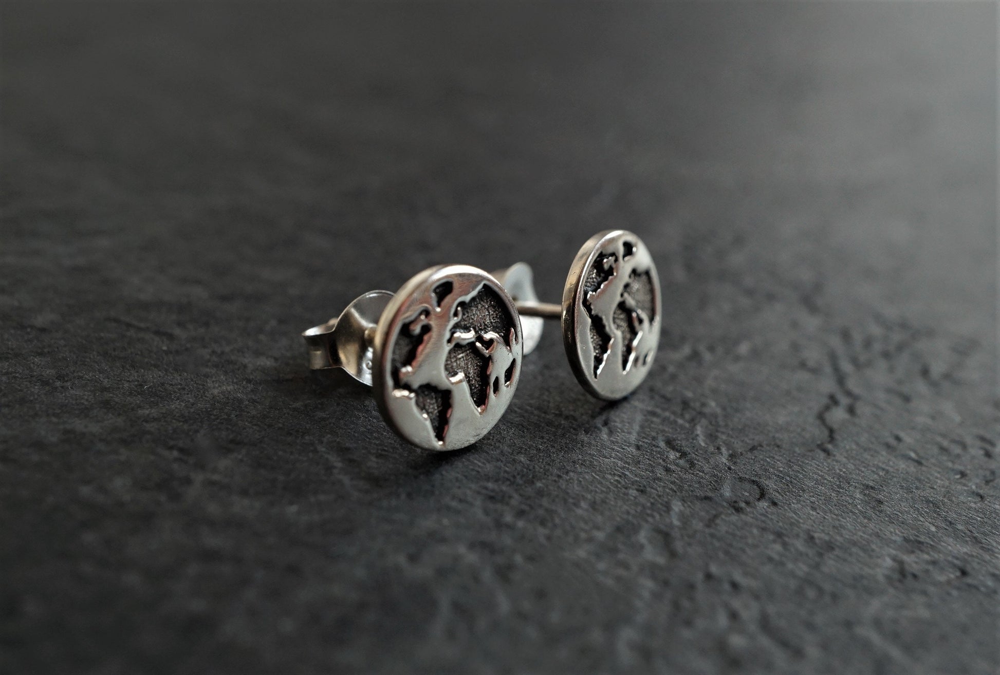 Sterling Silver Earth Ear Stud * Word Map Earrings * Traveller jewellery * World Map stud