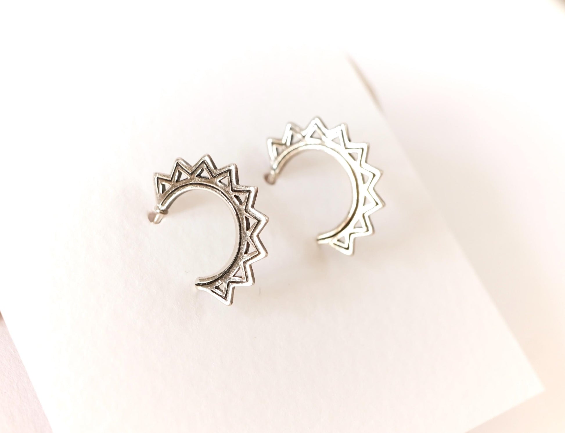 Tribal Sterling Silver Half Hoop Stud Earrings