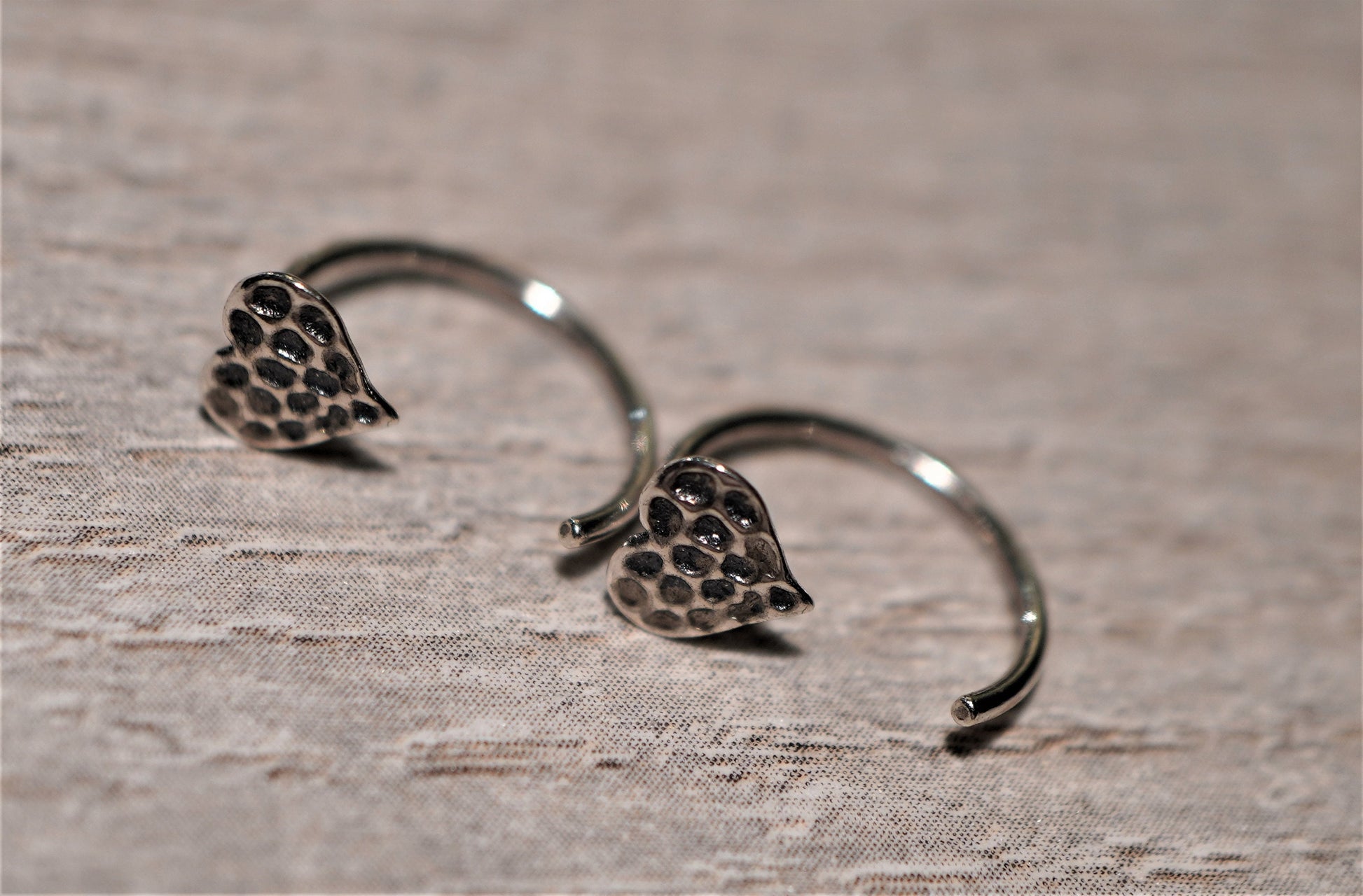 Heart size: 6x6mm, hoop dia: 12mm oxidized sterling silver
