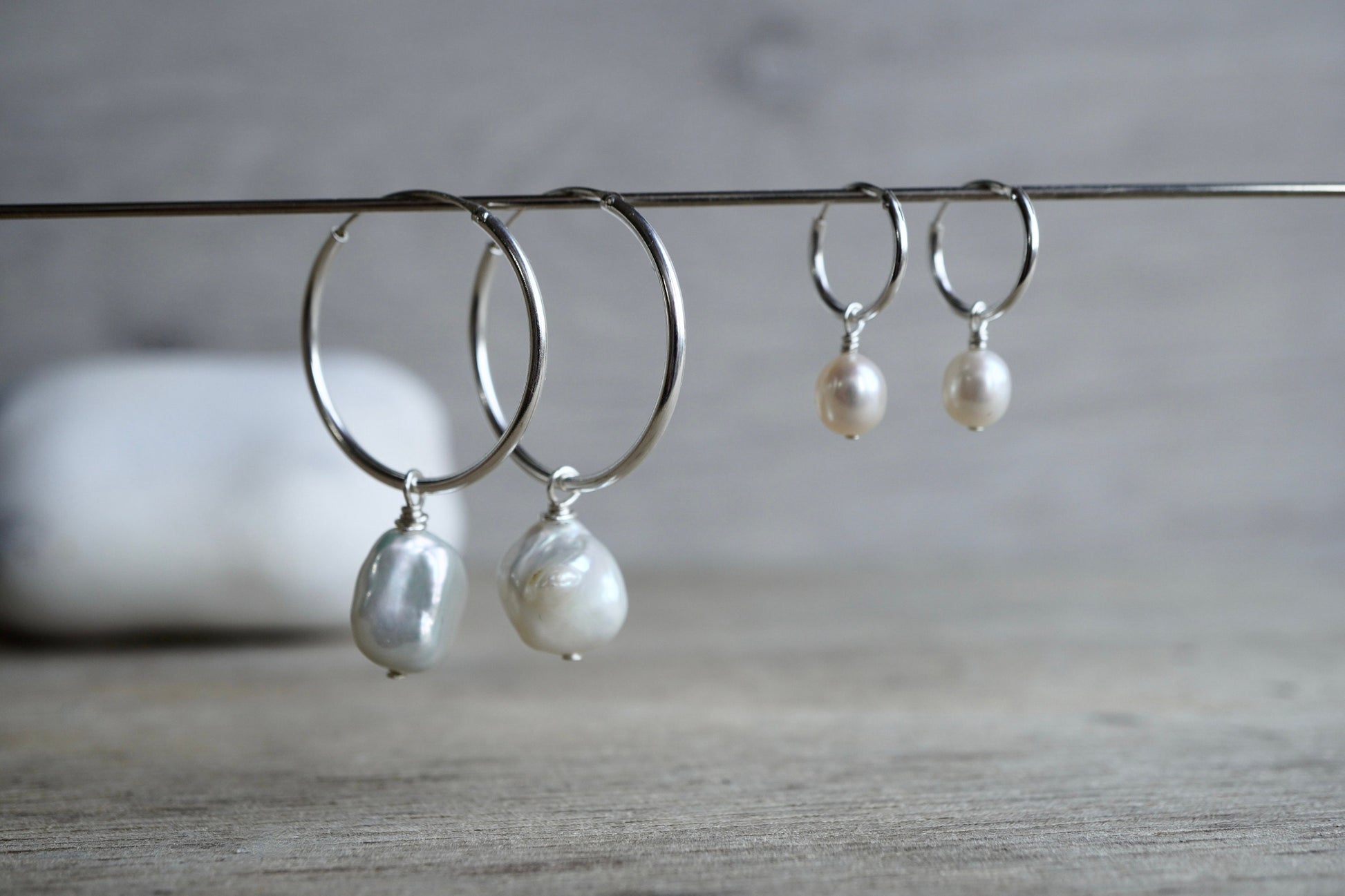 Sterling Silver Pearl earrings * Hoop earrings * Boho hoops * Pearl hoop