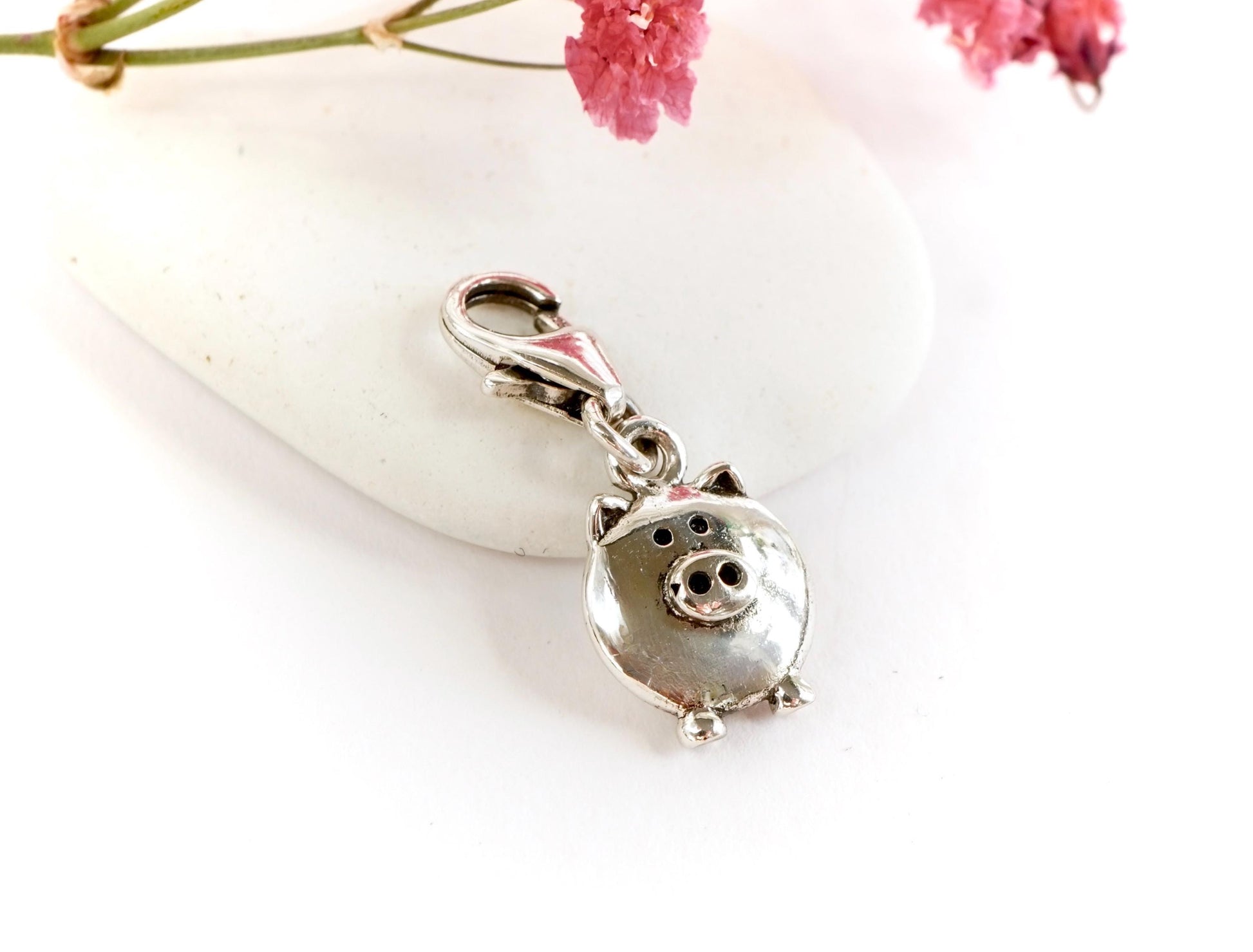 Sterling Silver Pig Clip on Charm, Pig charm, Good luck charm