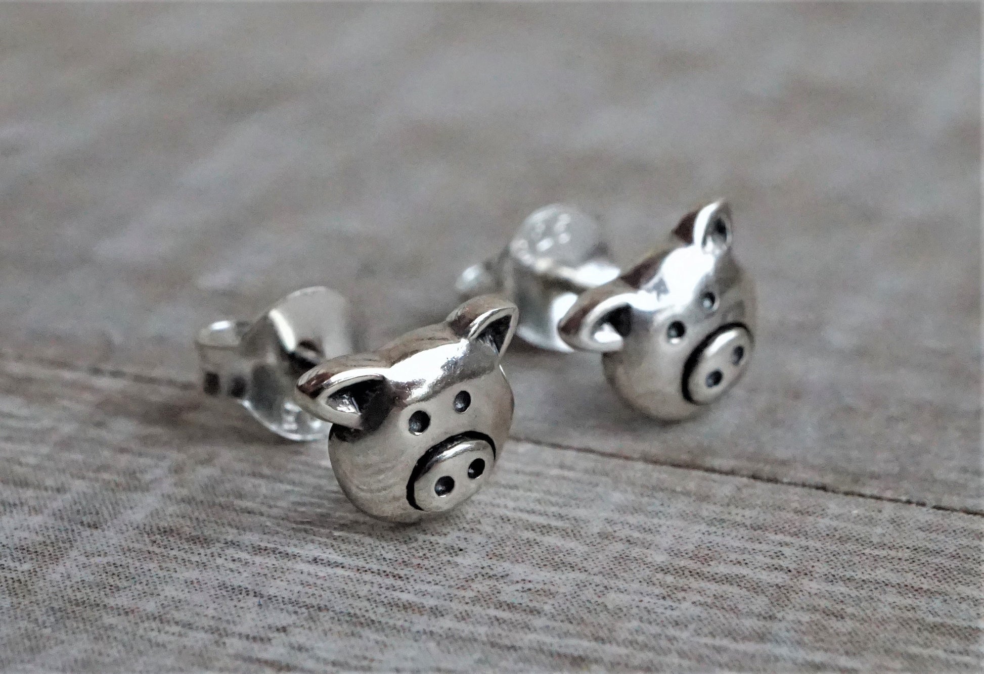 Sterling Silver Pig Stud Earrings * Stud earrings * Good luck jewelry * Animal stud