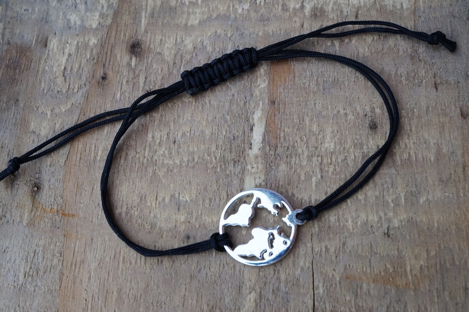 Sterling Silver Word Map Cord Bracelet * Travel fan * Map jewelry