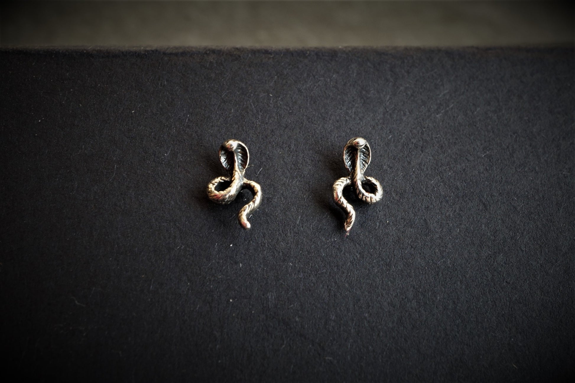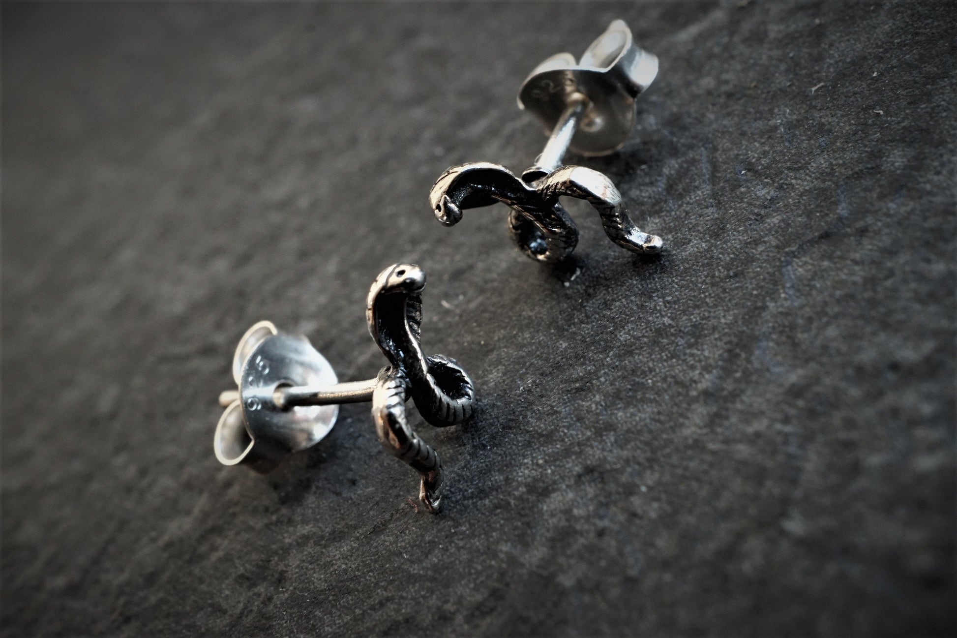 Tiny Cobra Stud Earrings * Sterling Silver * Snake jewellery