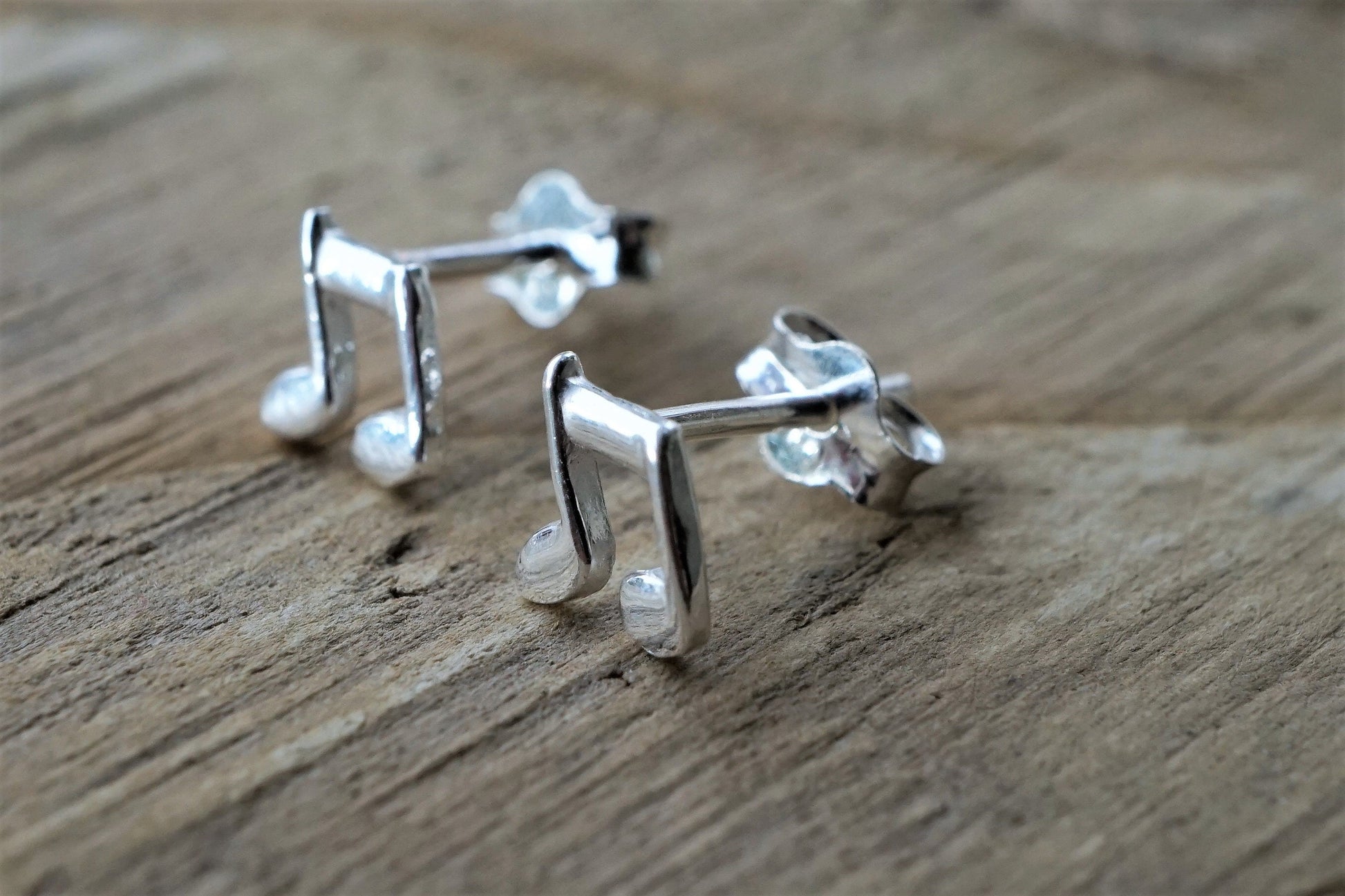 Tiny Music Note Earrings * Stud earrings * Sterling silver stud * Gift for Her