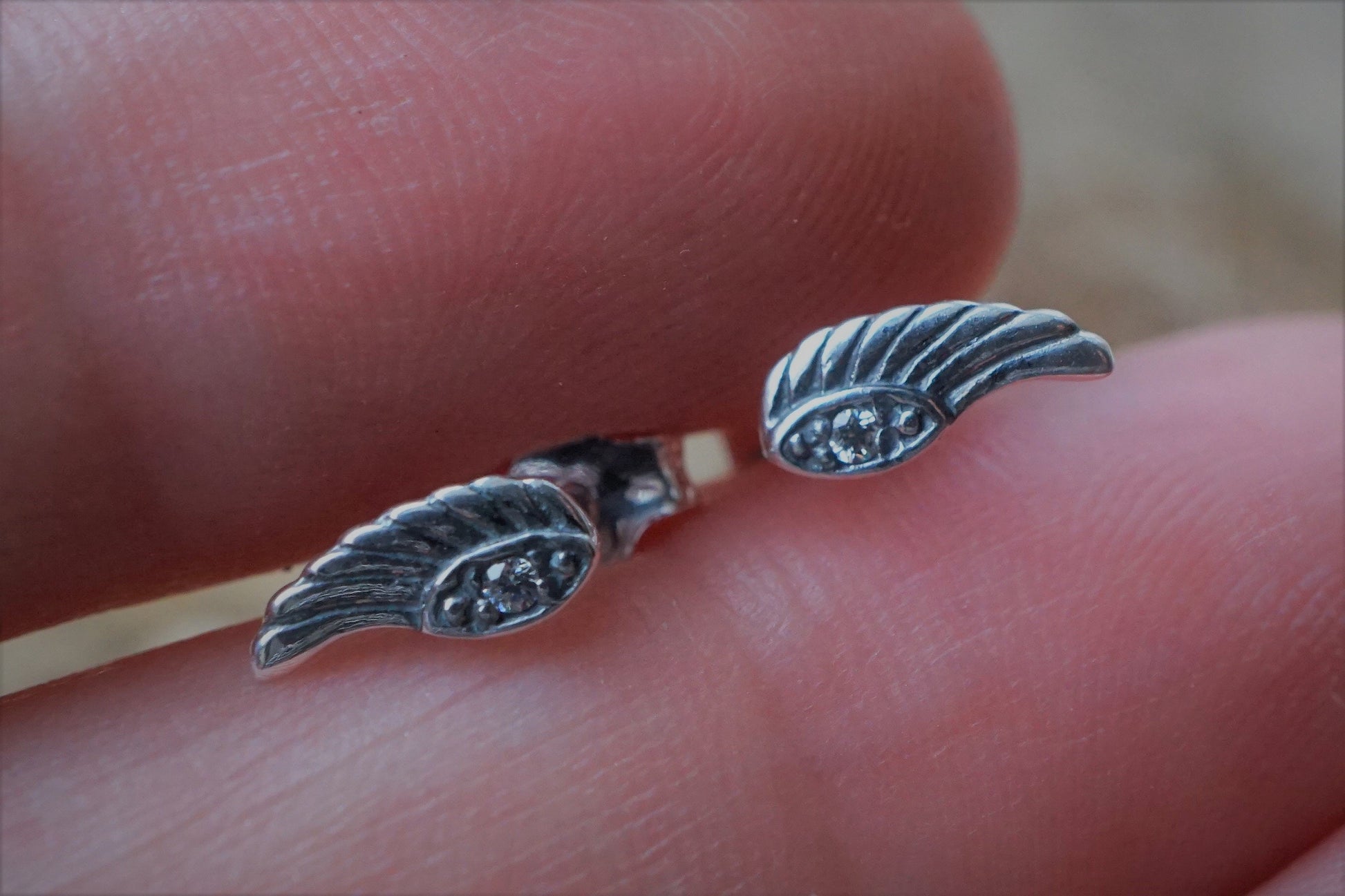 Tiny Sterling Silver Angel Wing Earrings, Stud earrings, Wing earrings, Sterling silver stud