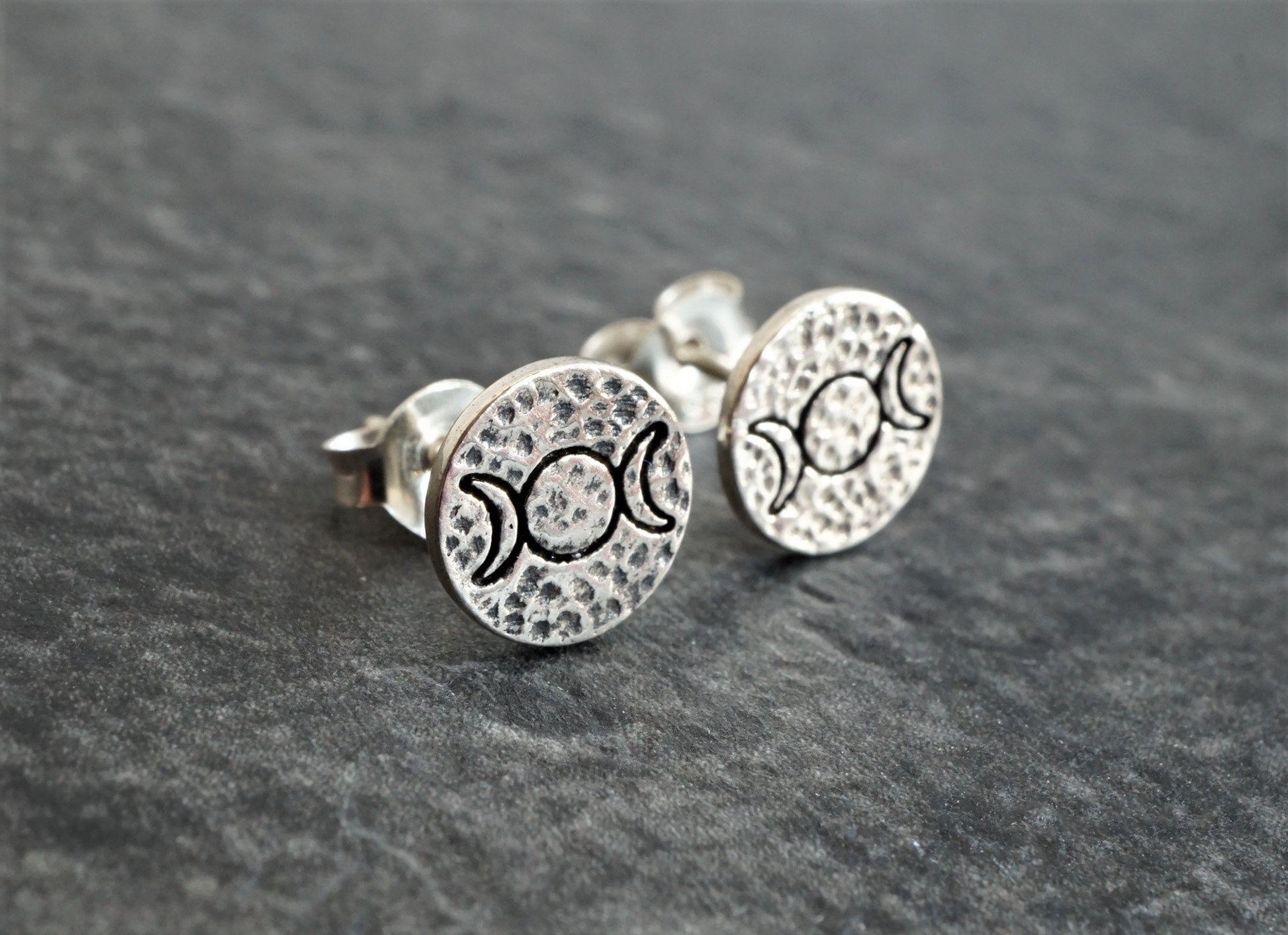 Triple Moon Ear Stud Sterling silver* Wiccan * Gift for her